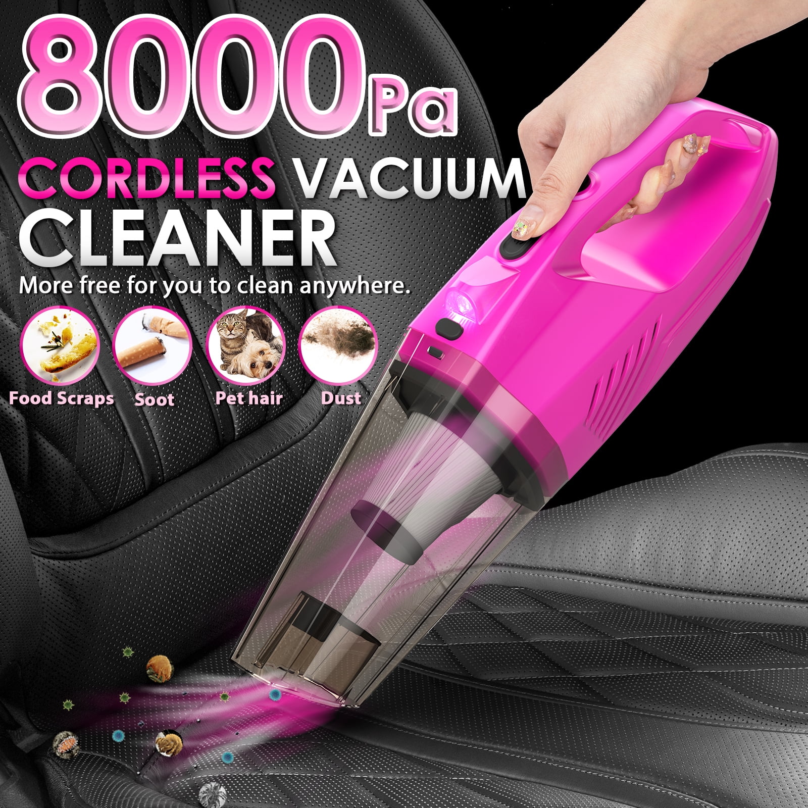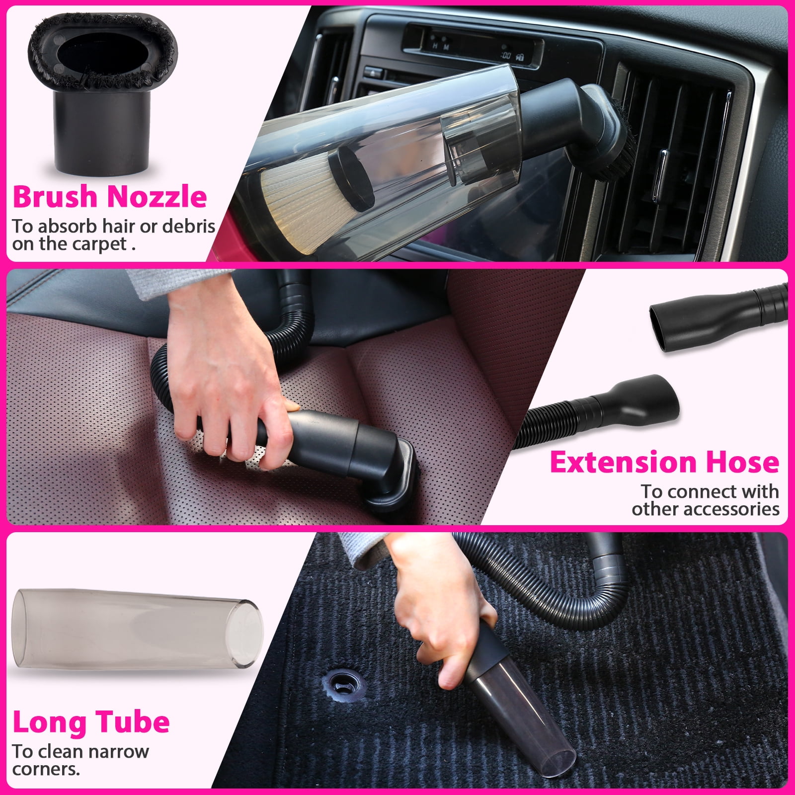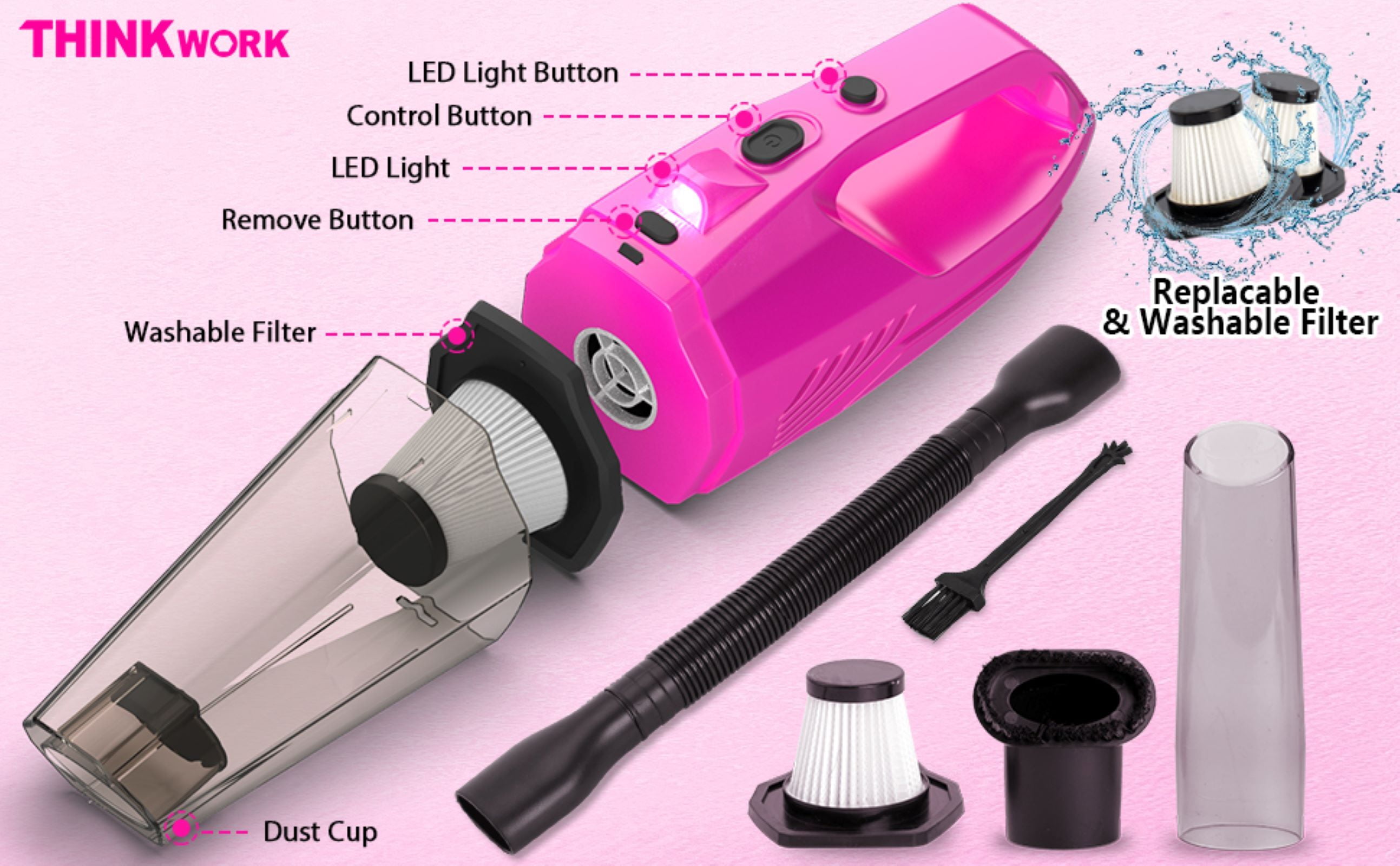 THINKWORK Pink Portable Vacuum Kit, Car Cleaning Kit with 8000PA Cordless Rechargeable Handheld Vacuum Cleaner,Car Interior Detailing Brush Set, Car Accessories for Cleaning, Gift for Women.The kit includes a comprehensive range of car wash accessories, and you can store them in the storage bag, making cleaning a convenient and easy task.The pretty pink color is very suitable for women, you can give this vehicle cleaning kit as a gift to your friends, wife, mother or family.