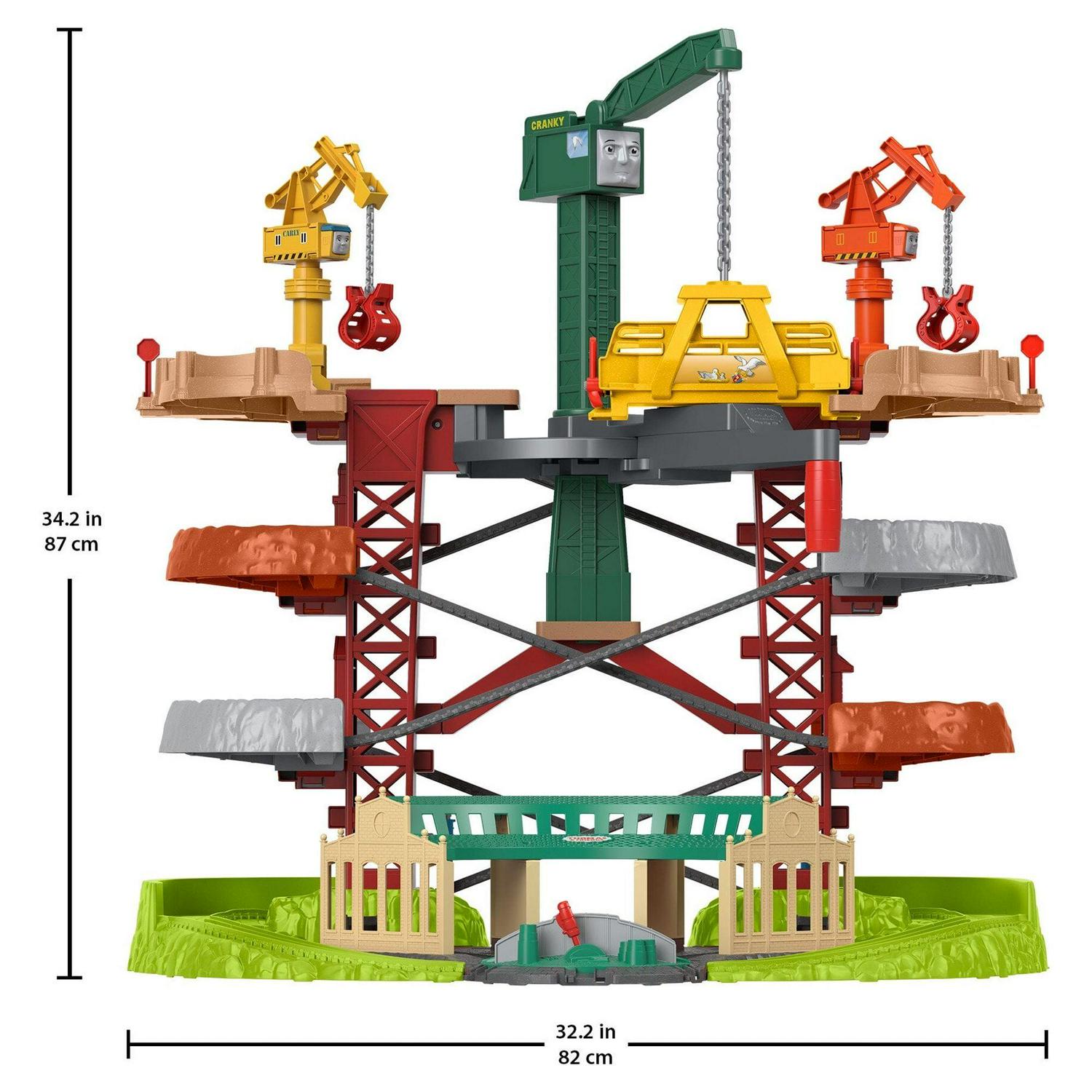 – Multi-level Thomas & Friends playset standing over 2.5 feet tall and featuring favorite places and characters from the show