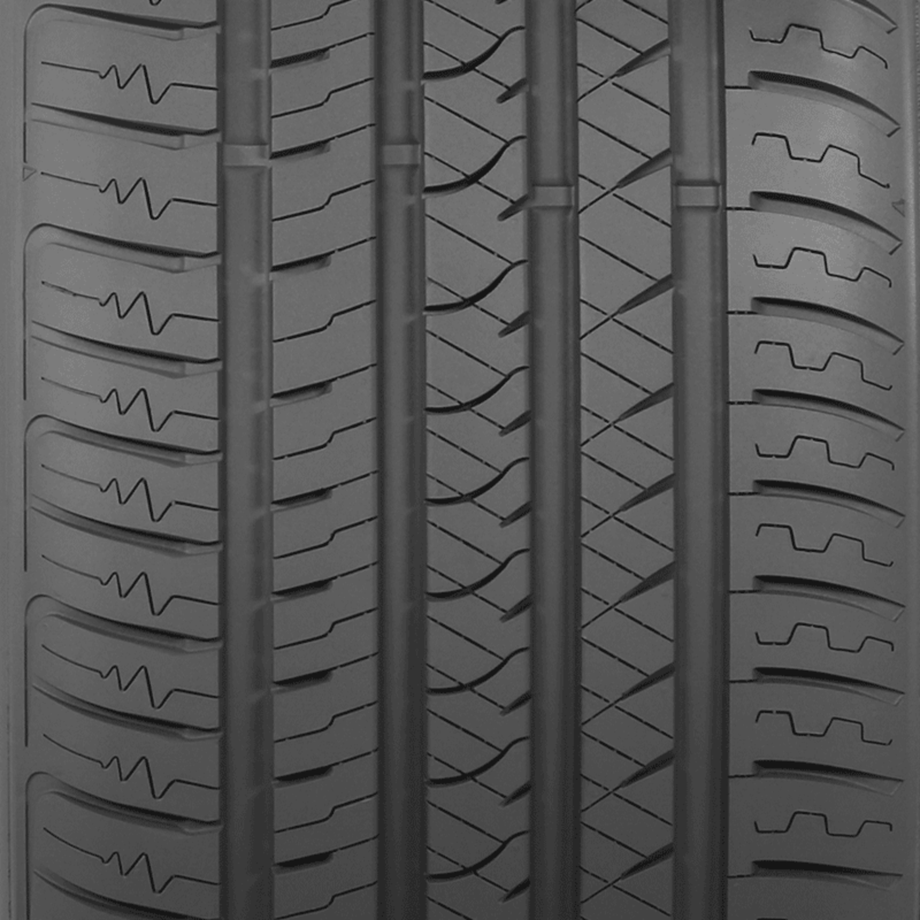 - Grooves within the tread are designed to enhance hydroplaning resistance