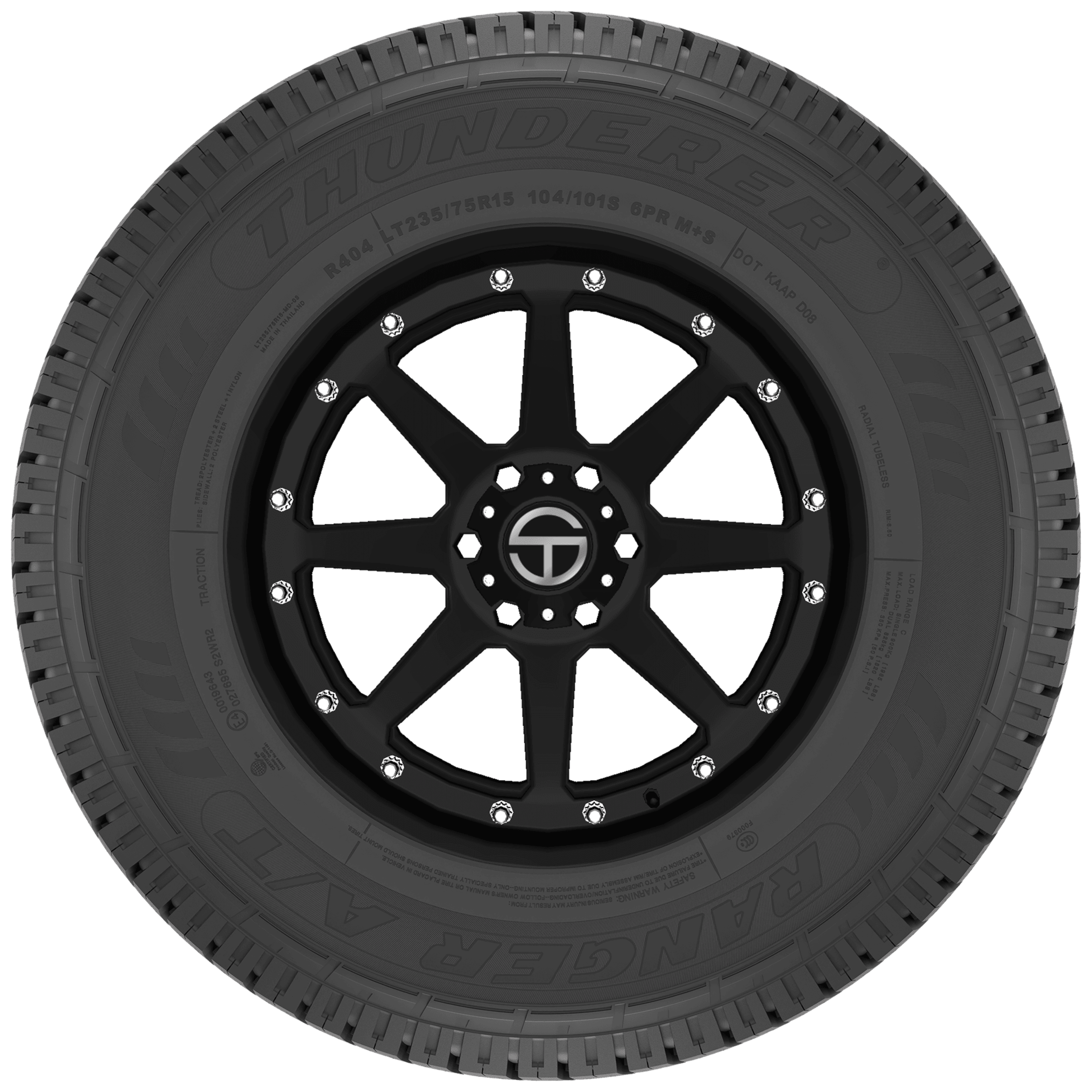 The Ranger A/T R404 from Thunderer is an all-terrain tire for light trucks and features an aggressive tread pattern for off-road traction, rim guard and reinforced sidewall, durable tread formulation, and is designed for great responsiveness and road manners on the highway. Additionally, the Ranger A/T R404 is backed by a 55,000 mile limited manufacturer tread life warranty.