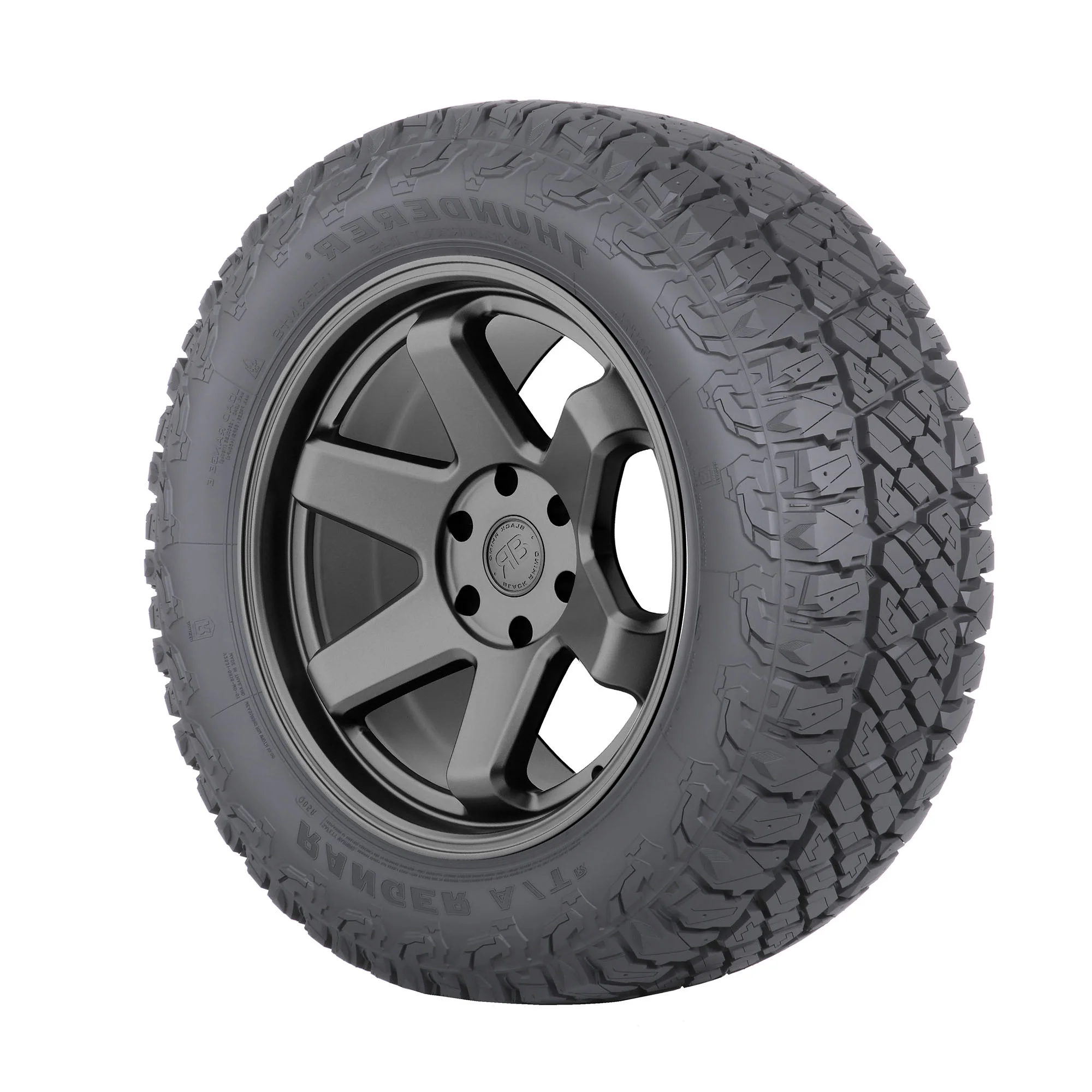 Thunderer Ranger ATR LT285/75R16 126/123S E OVERVIEW Designed for use on light trucks and SUVs, the Ranger ATR from Thunderer is a tough all-terrain tire that’s also pre-drilled for easy installation of studs in extreme winter weather. The Ranger ATR features an optimized rubber compound for off-road traction, full nylon overwrap layer in the plies, and a pattern of 3D sipes and rigid tread blocks for solid wet-weather traction. Additionally, the Ranger ATR is backed by an up to 50,000 mile limited manufacturer tread life depending on the tire’s size.