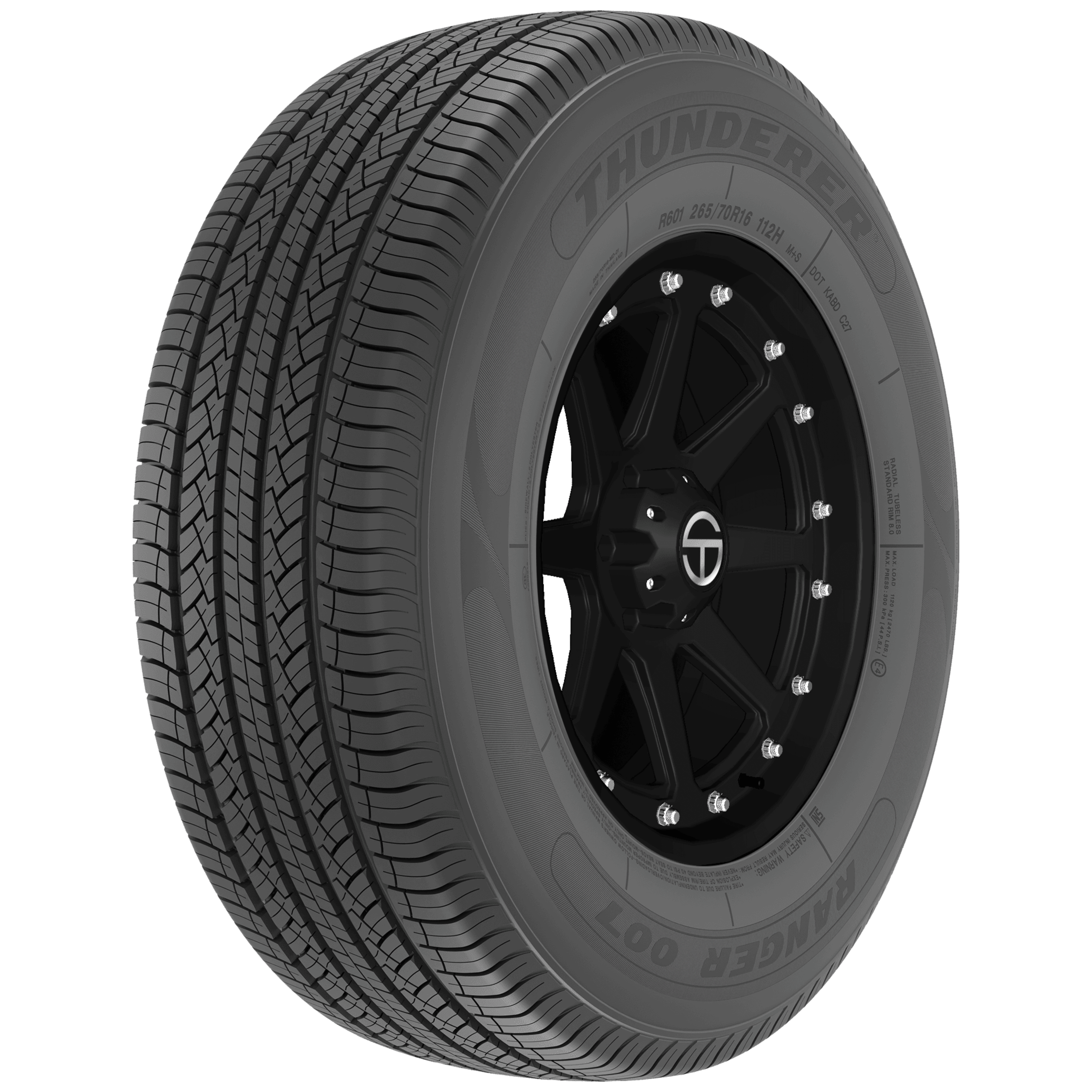 The Thunderer Ranger R007 HT is an all-season tire designed for light trucks and SUVs. It features a 5-rib tread with angled and circumferential grooves to divert water from the contact patch and prevent hydroplaning. Additionally, it has angled grooves and sipes for improved wet and winter traction, a closed shoulder for better cornering and stability, and a long-lasting rubber compound. Plus, the Thunderer Ranger R007 HT comes with a 60,000 mile limited manufacturer tread life warranty.