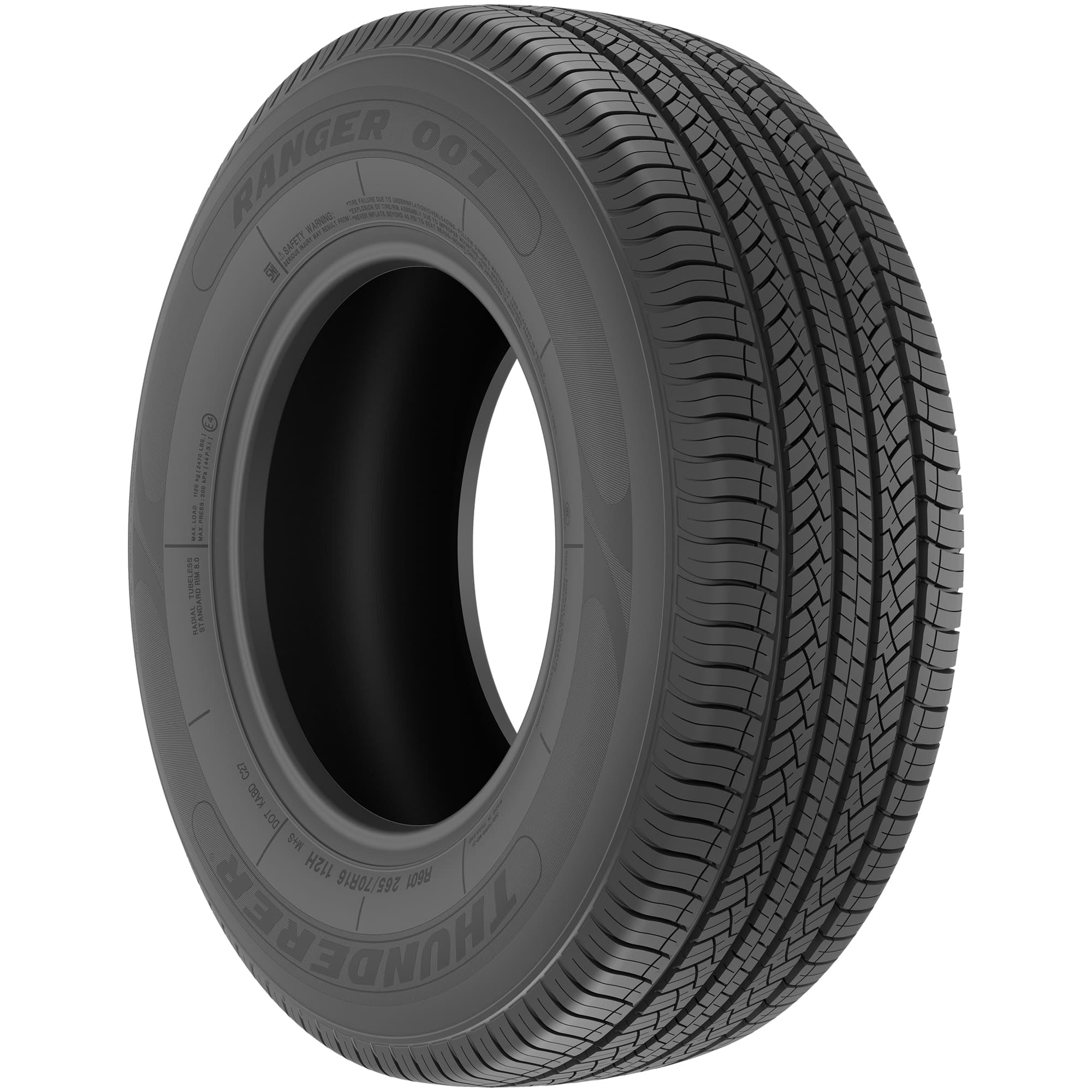 Thunderer Ranger R007 HT 275/65R18 116H OVERVIEW The Thunderer Ranger R007 HT is an all-season tire designed for light trucks and SUVs. It features a 5-rib tread with angled and circumferential grooves to divert water from the contact patch and prevent hydroplaning. Additionally, it has angled grooves and sipes for improved wet and winter traction, a closed shoulder for better cornering and stability, and a long-lasting rubber compound. Plus, the Thunderer Ranger R007 HT comes with a 60,000 mile limited manufacturer tread life warranty.