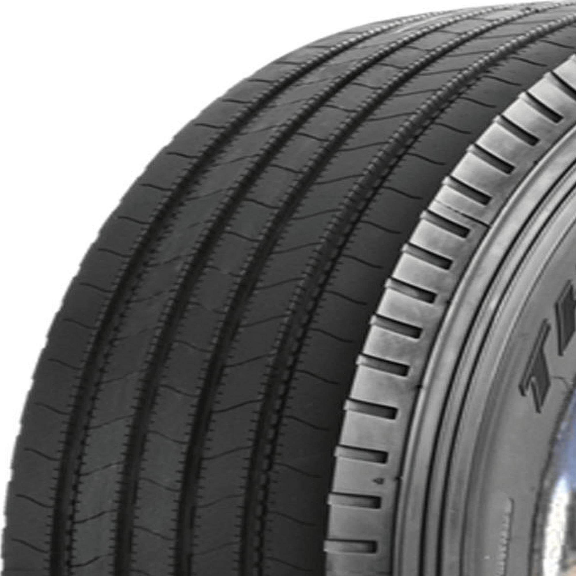 Designed for use on the trailer axle of semi-trucks in local, regional, and long haul applications Four zigzag grooves funnel water out of the tread for better hydroplaning resistance Deep tread depth for consistent performance, even as the tire wears down Rubber compound guards the tire against cuts, chips, and abrasions Inner and outer shoulder ribs guard the tire against uneven wear for a longer tread life Size: 11R22.5 Load Range: G Product May Vary From Picture Wheel/Rim Not Included
