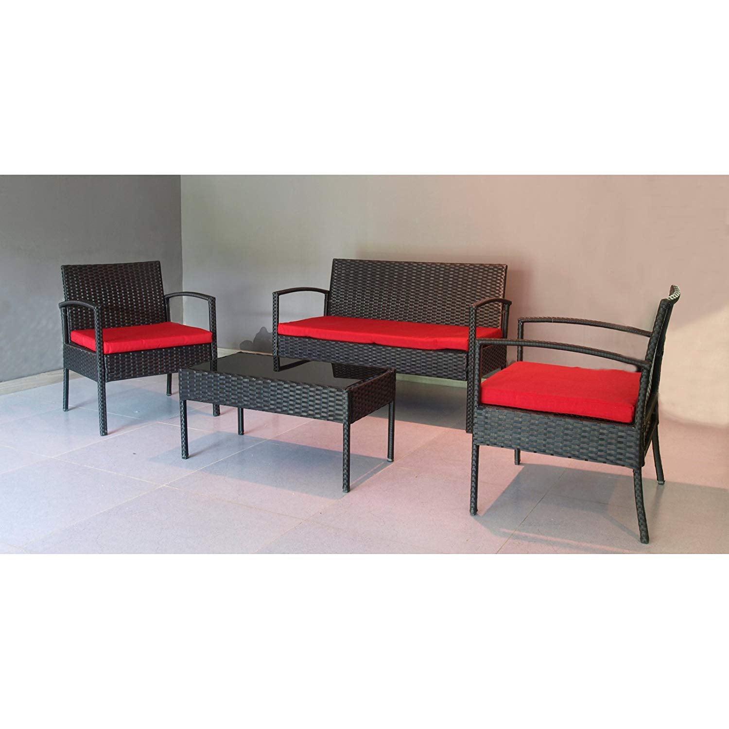 Thy-Hom Teaset Four-Piece Patio Conversation Set-Color:Red