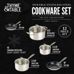 Thyme and Table Non-Stick 12-Piece Cookware Set Tri-Ply Stainless Steel
