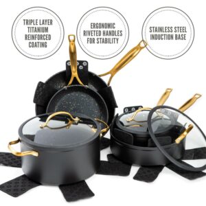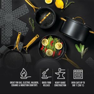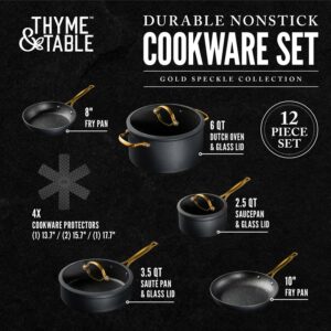 Thyme and Table Nonstick 12-Piece Cookware Set, Black and Gold