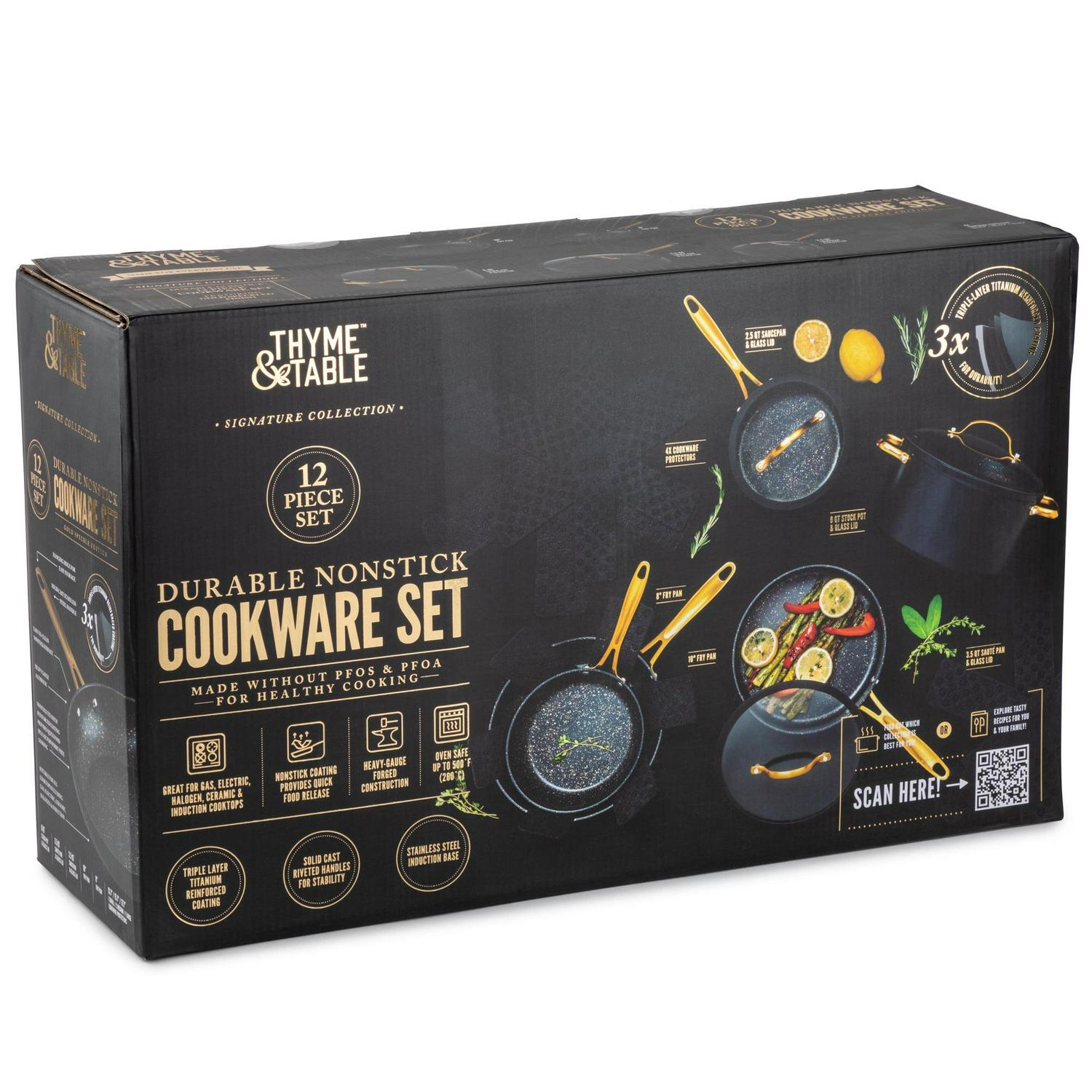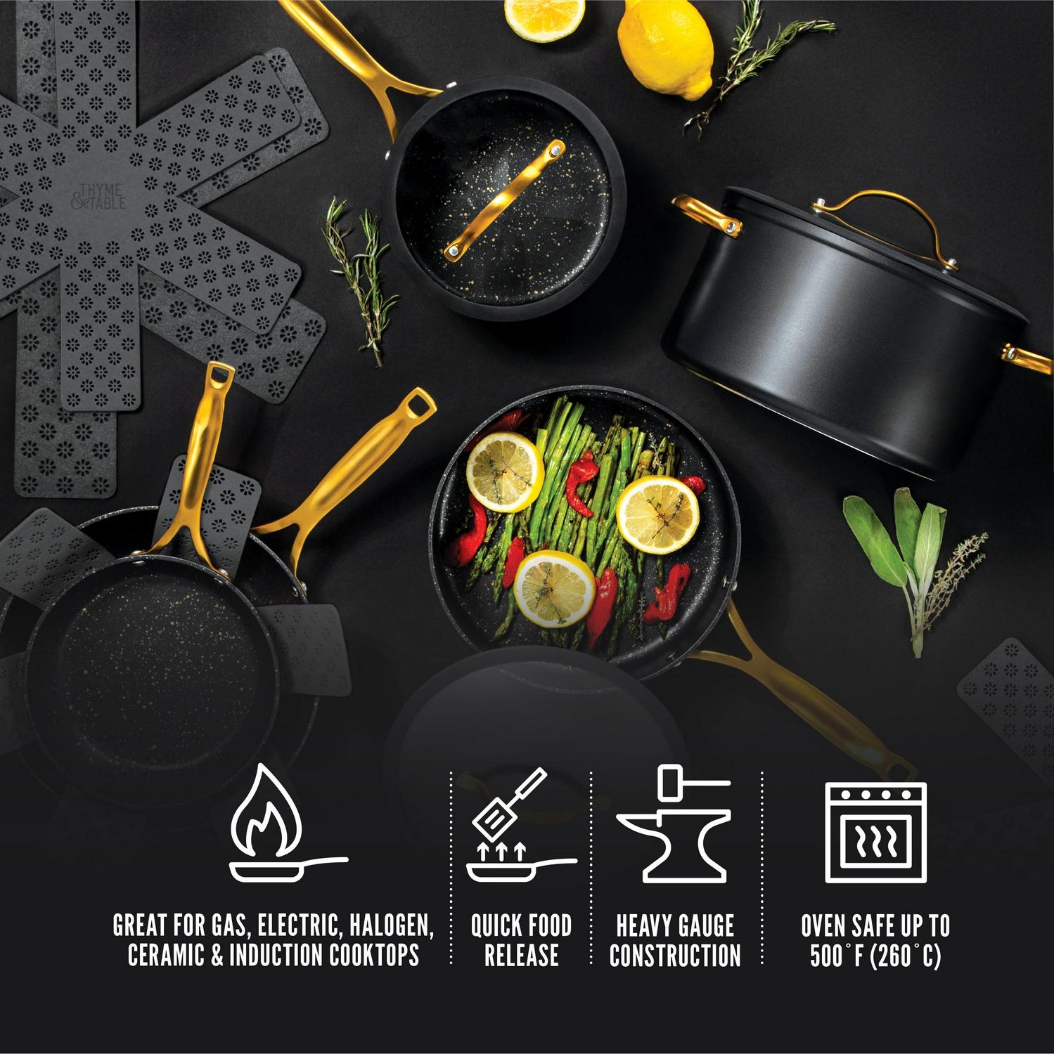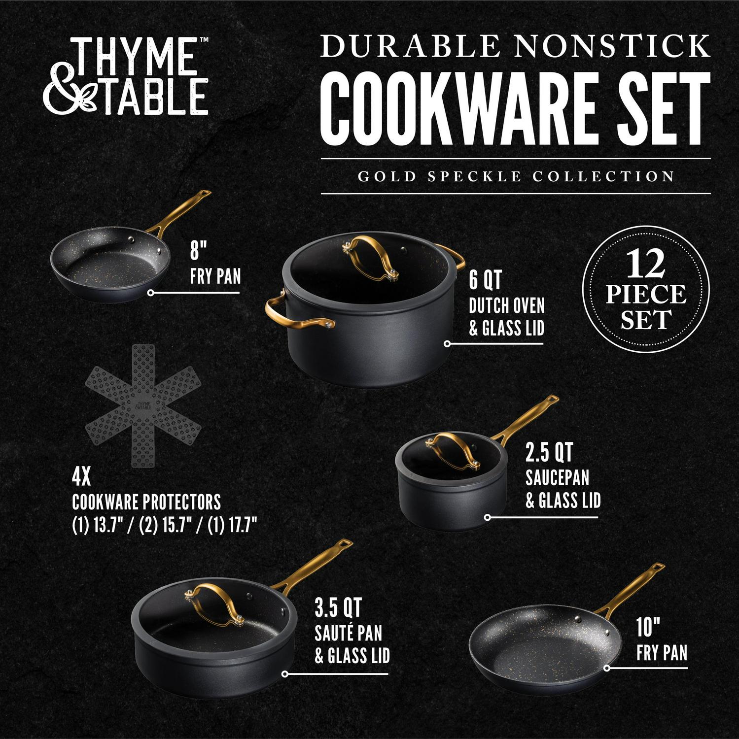 - Thyme & Table Non-Stick 12-Piece Cookware Set, Black & Gold