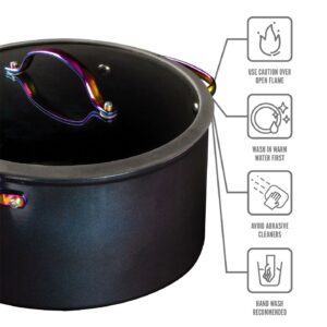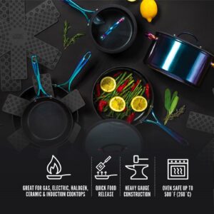 Thyme & Table Nonstick 12-Piece Cookware Set, Rainbow is where culinary artistry meets effortless functionality. Elevate your cooking experience with this exquisite collection, meticulously crafted to meet the demands of both amateur enthusiasts and seasoned chefs. Indulge in the luxury of a flawlessly nonstick surface, expertly engineered to ensure your creations effortlessly slide off the pan. Whether it’s sautéing delicate vegetables or searing succulent meats, our cookware guarantees an exceptional cooking performance every time. Each piece in this set is thoughtfully designed with versatility in mind. From the compact saucepans perfect for simmering delicate sauces, to the spacious stockpot ideal for crafting savory stews, our cookware collection empowers you to conquer any culinary endeavor. Crafted with durability at its core, this cookware set is built to withstand the test of time. The heavy-gauge aluminum construction ensures even heat distribution, eliminating hotspots that could compromise your masterpiece. For product’s longevity, please hand wash in warm water with a soft sponge.