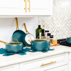 – Thyme & Table Nonstick Willow Cookware, 12-Piece Set, Peacock Blue