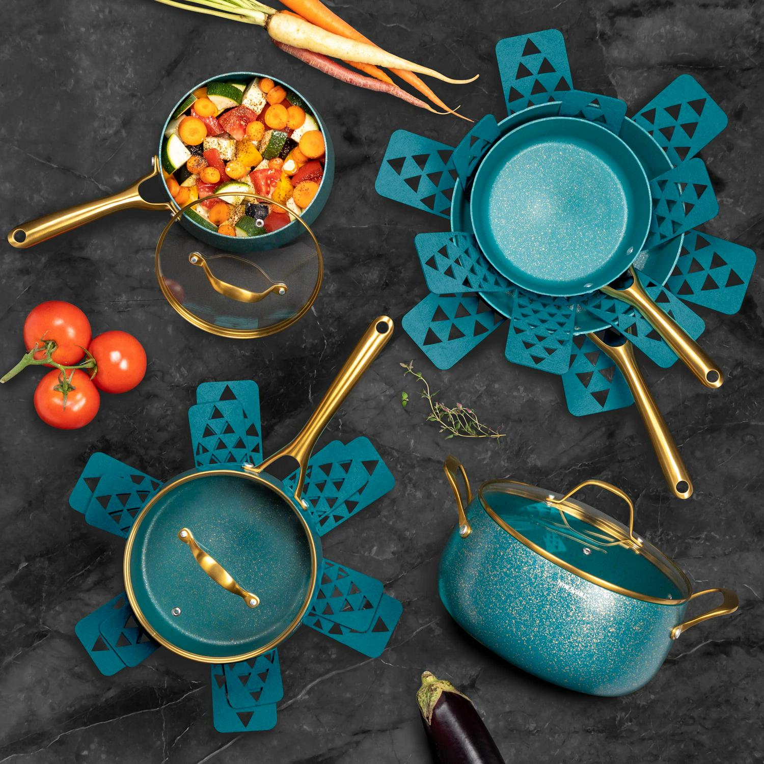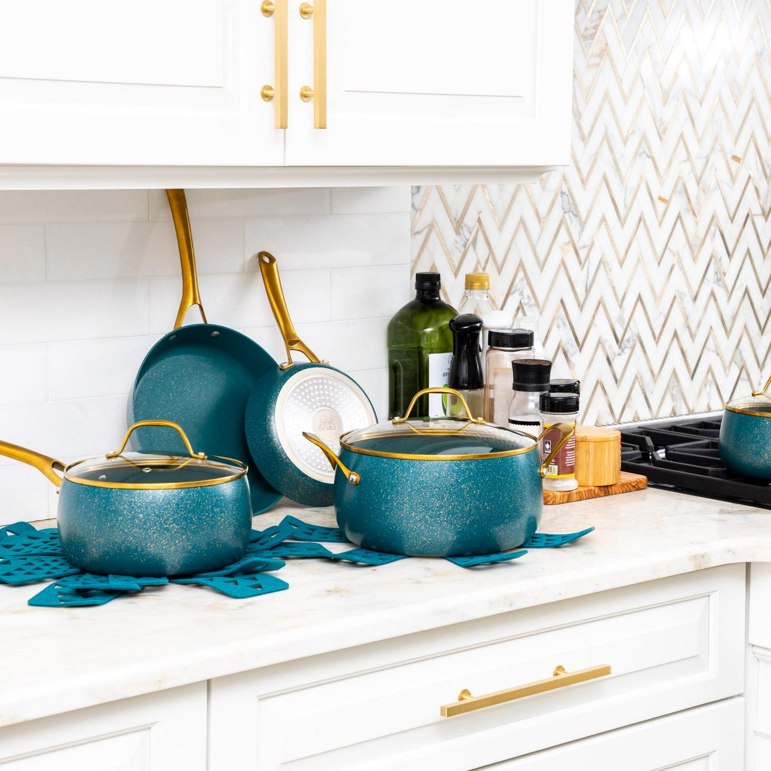 - Thyme & Table Nonstick Willow Cookware, 12-Piece Set, Peacock Blue