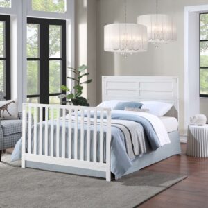 – Quickly and easily converts from a crib to a toddler bed (toddler guard rail not included) to a day bed then to a full-size headboard and footboard (bed frame not included)