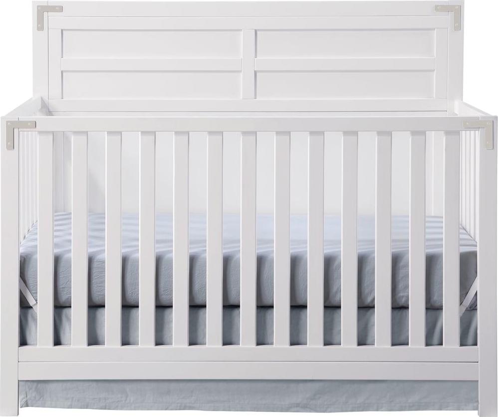 This Rustic Industrial Ti Amo Mila 4-in-1 Convertible Crib is nothing short of awesome. The industrial inspired design is mixed with a rustic feel given by the framed wood panels, which is further accentuated by our custom, hand-rubbed finishes. Metal corner brackets on the headboard and footboard add more notes to the industrial look, setting this crib apart from the competition. The Ti Amo Mila crib easily converts to a toddler bed (with separate purchase of the Ti Amo 50 inch Toddler Guard Rail), day bed and full-size bed. The coordinating Ti Amo 3500 6 Drawer Double Dresser (not available in Snow White) and Ti Amo Dressing Kit complete the entire nursery. All hardware and tools are included for easy assembly. This Ti Amo Mila crib celebrates craftsmanship by design. Environmental consideration is given in that this crib is made of New Zealand Pine, a sustainable and renewable resource. Fully Assembled Dimensions: 53.8 x 29 x 45 .