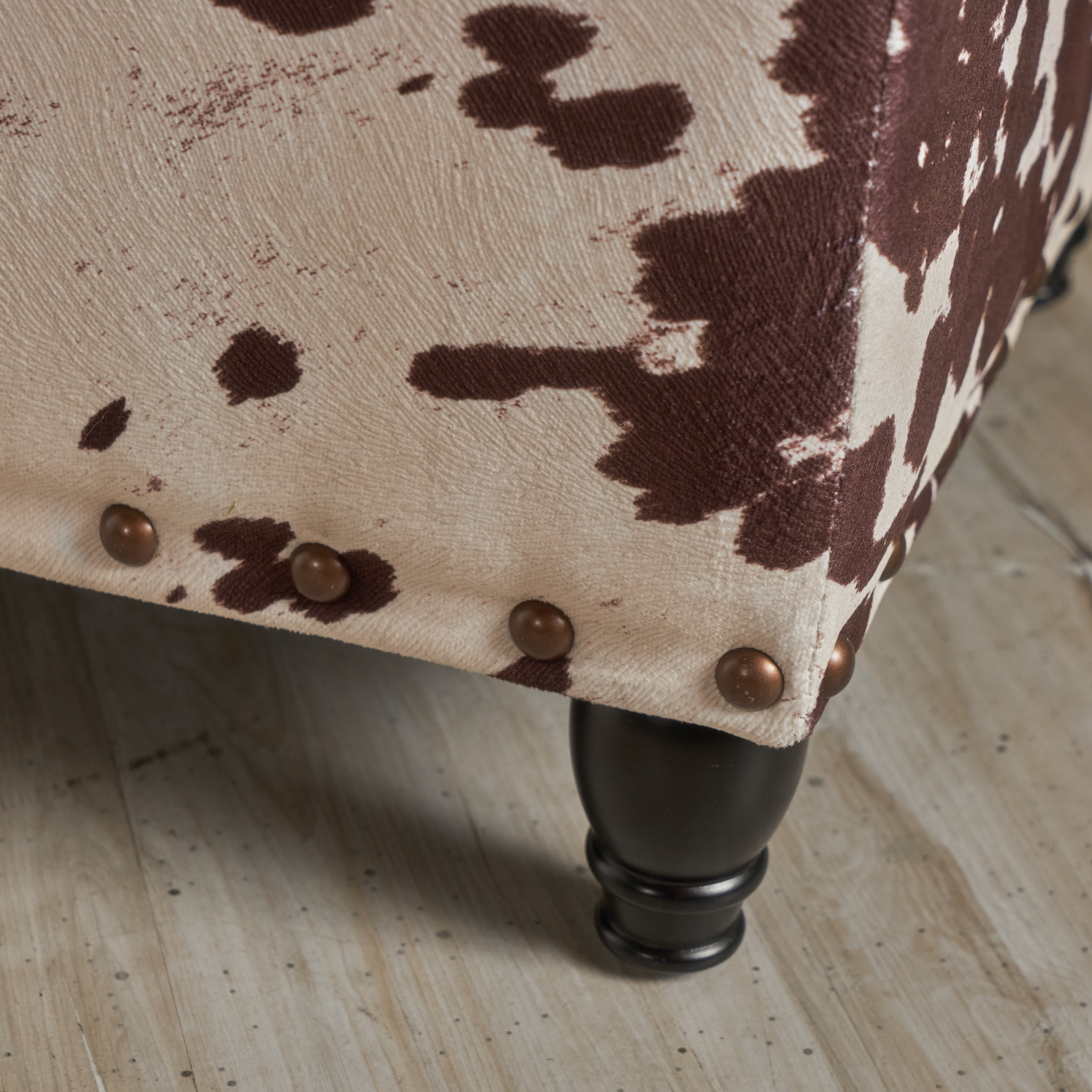 Tia Velvet Storage Ottoman, Milk Cow
