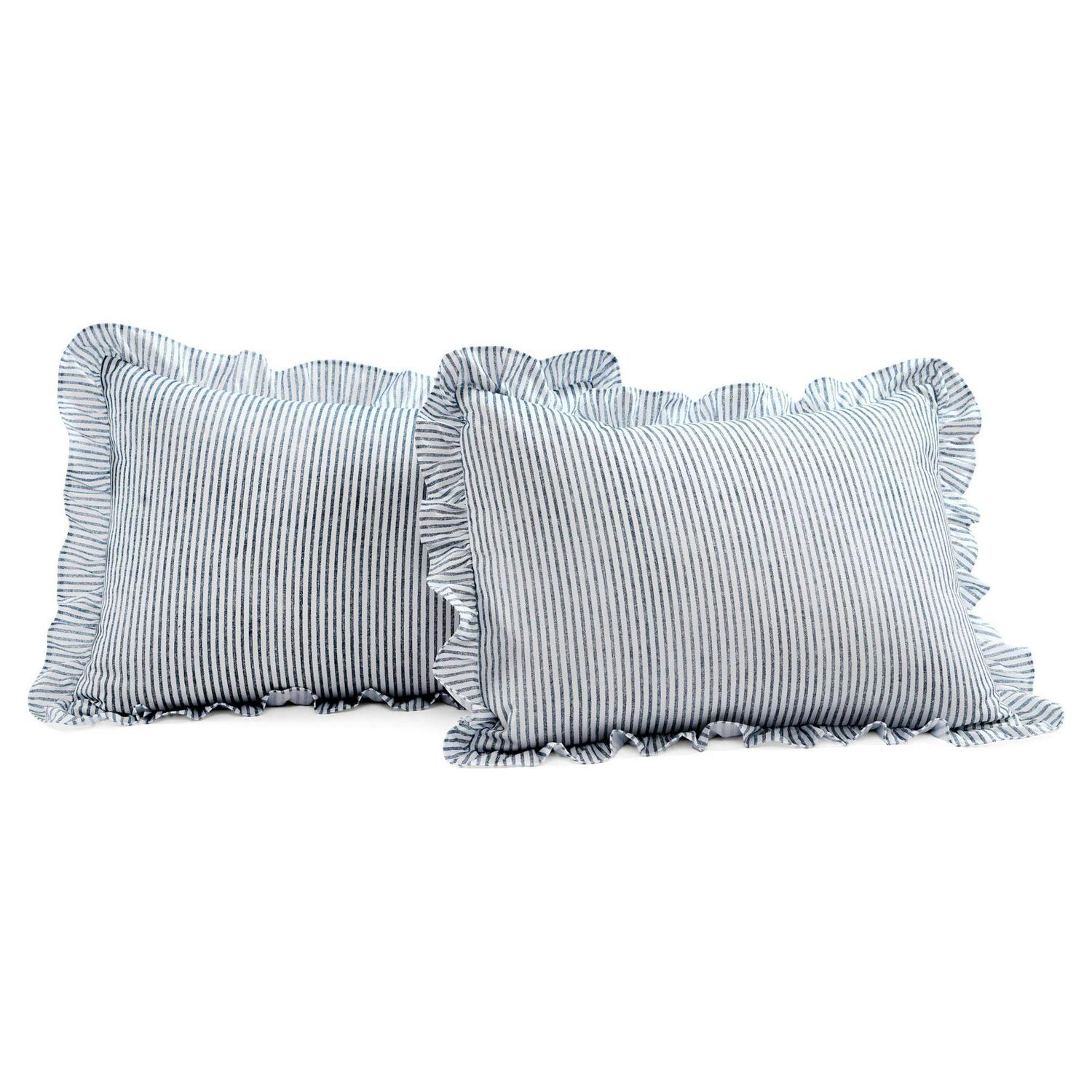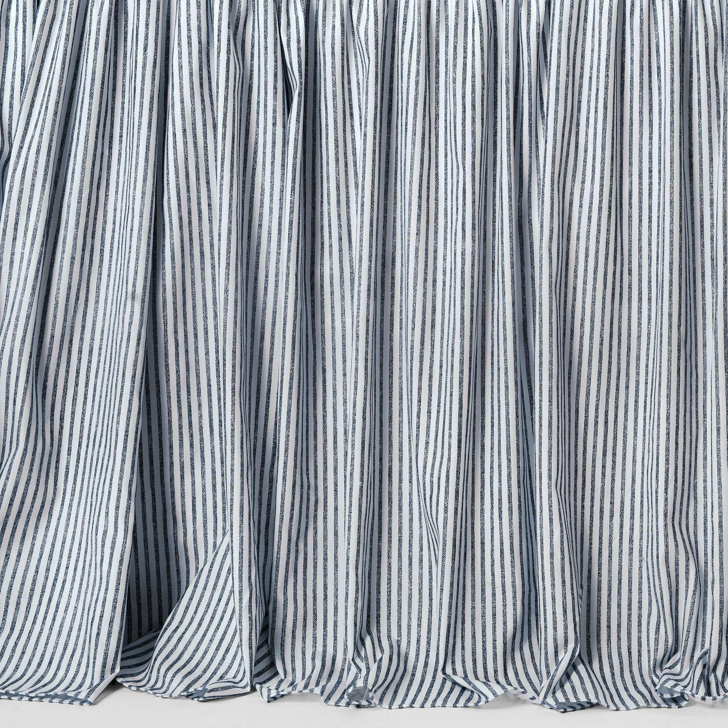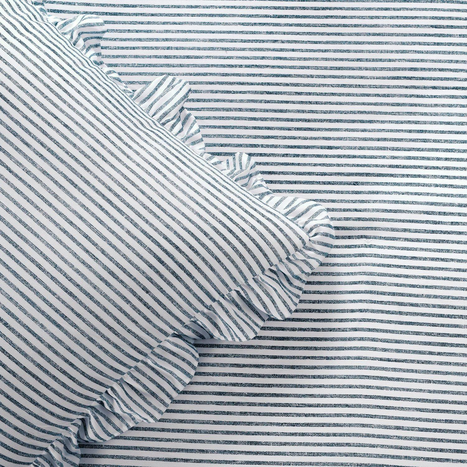 Give your bedding a makeover with this Ticking Stripe Bedspread set. It’s made of 100 percent soft yet durable polyester with 100 percent polyester fill. The printed bedspread features a timeless classic pinstripe pattern on the front. It also has chic and stylish ruffled edges. The three-piece bedspread set includes one bedspread and two matching pillow shams. The oversize length gracefully drapes onto the floor and the pleated edging lets you keep it perfectly in place. The polyester bedspread is available in multiple sizes and colors to suit your needs.