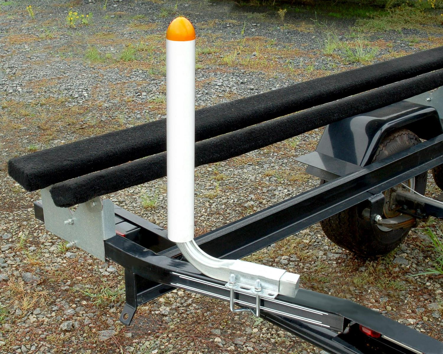 Bright orange end caps on these PVC guides provide a bright, visible target when loading your pontoon boat. The guide posts are designed to be mounted between the pontoons. Made of 1-1/2″ square, 16-gauge steel galvanized tubing and covered by 2″ x 20″ non-marking white PVC pipe. Guide posts extend fully into the PVC tube for additional strength. Mounts to trailer cross members up to 2″ wide and 2″ to 4″ high. All mounting hardware is included.
