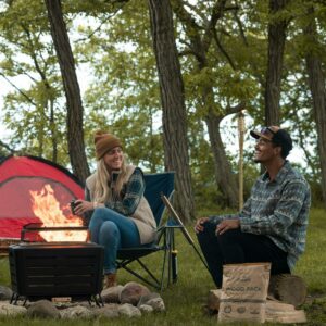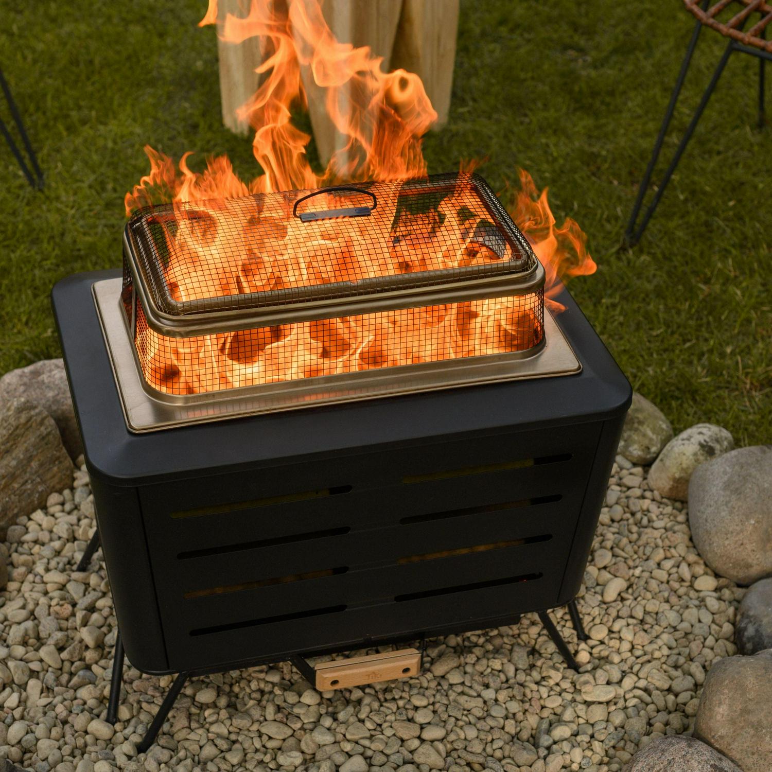 – Screen hangs firmly on the lip to easily add or stir logs or Wood Packs