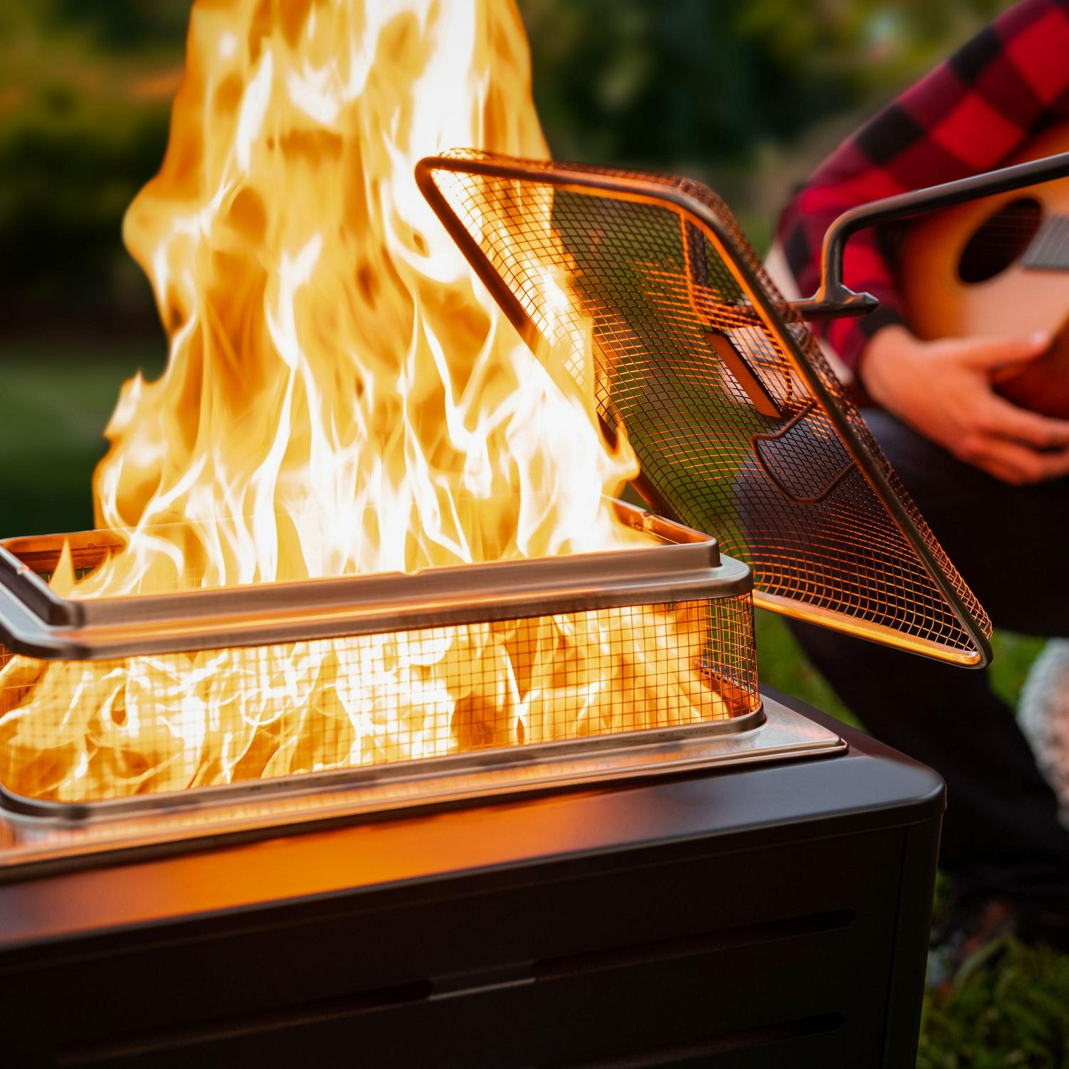- Screen hangs firmly on the lip to easily add or stir logs or Wood Packs