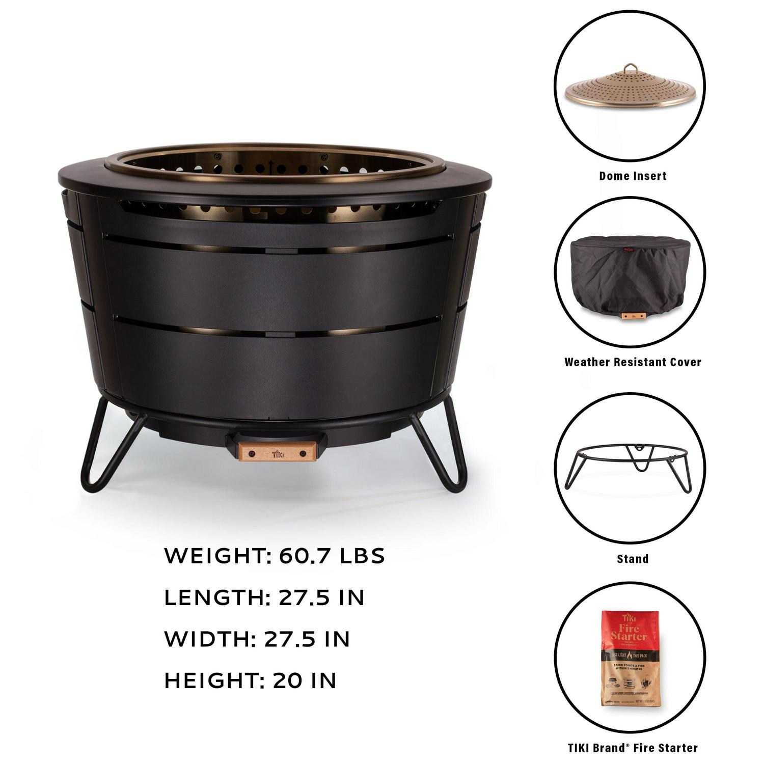 - Can be used with TIKI Brand Smokeless Wood Packs or real wood logs