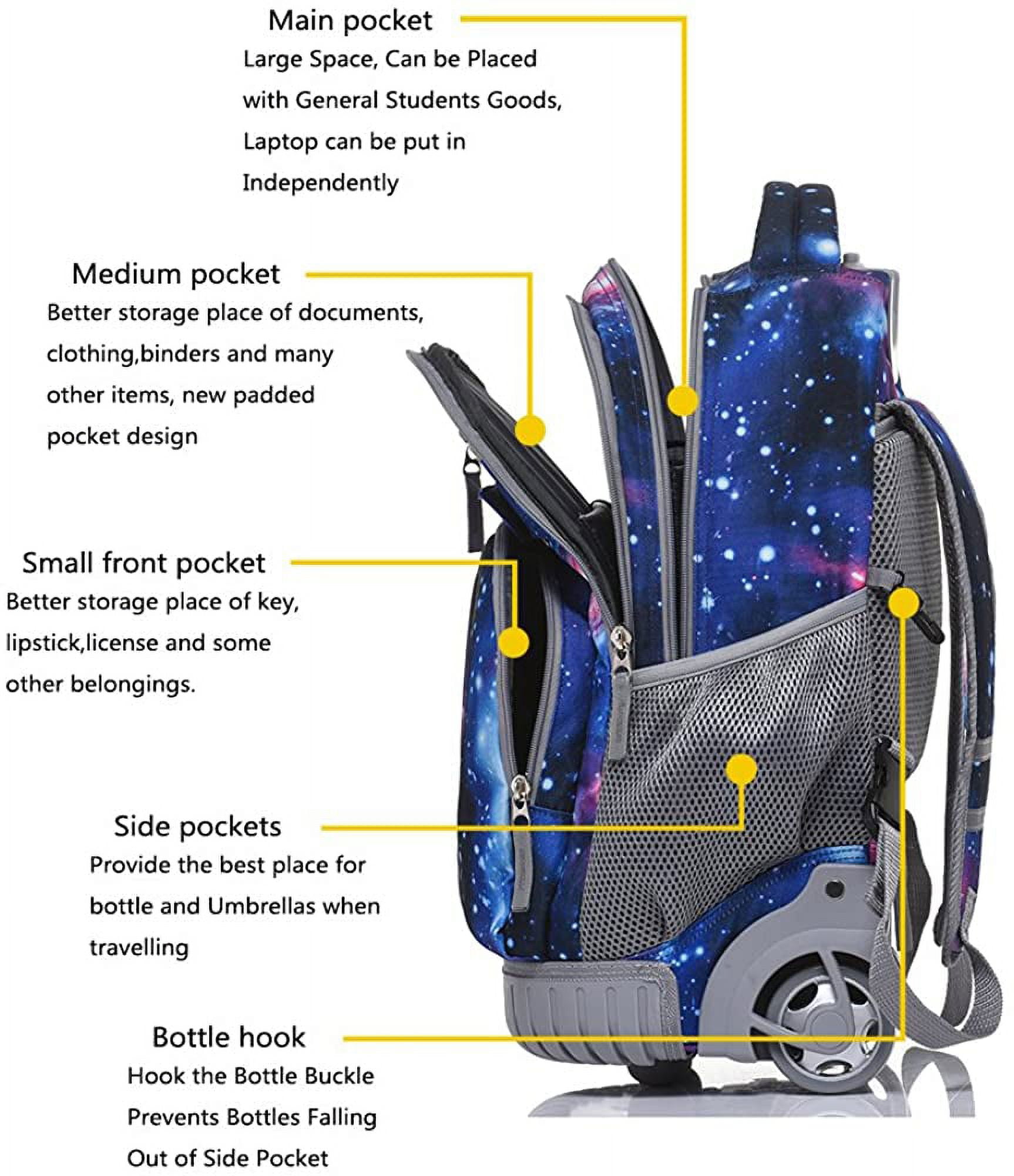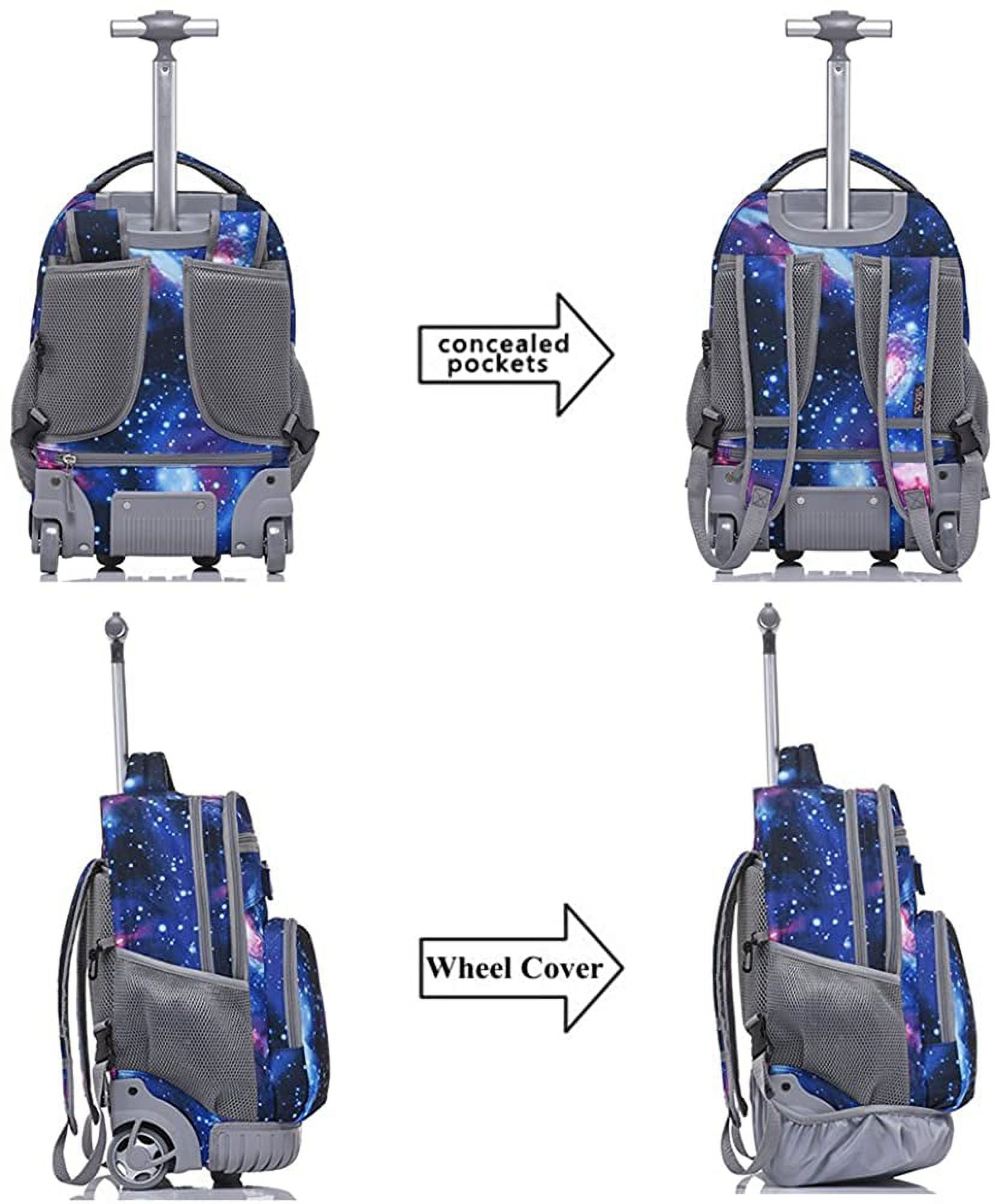 Tilami Blue Galaxy 18 inch Rolling Backpack Kids Wheeled Backpack