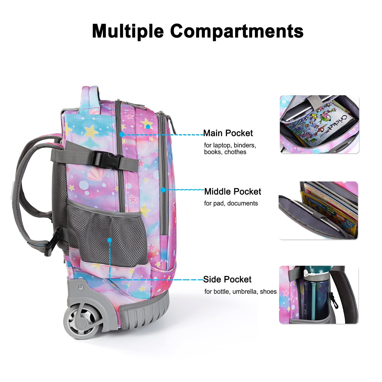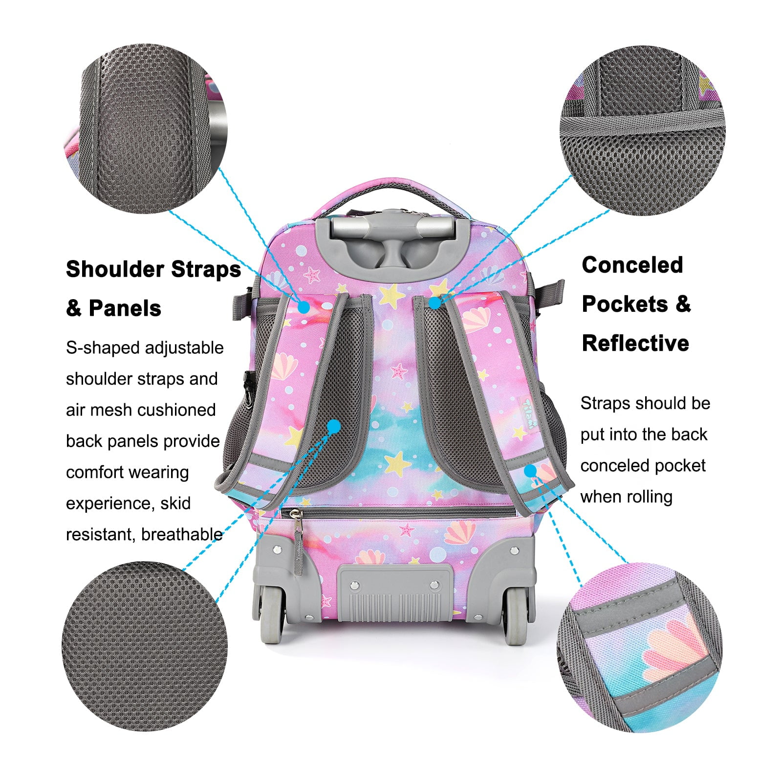Tilami Rolling Backpack 19 inch Wheeled Cute LAPTOP Boys Girls Travel School Student Trip