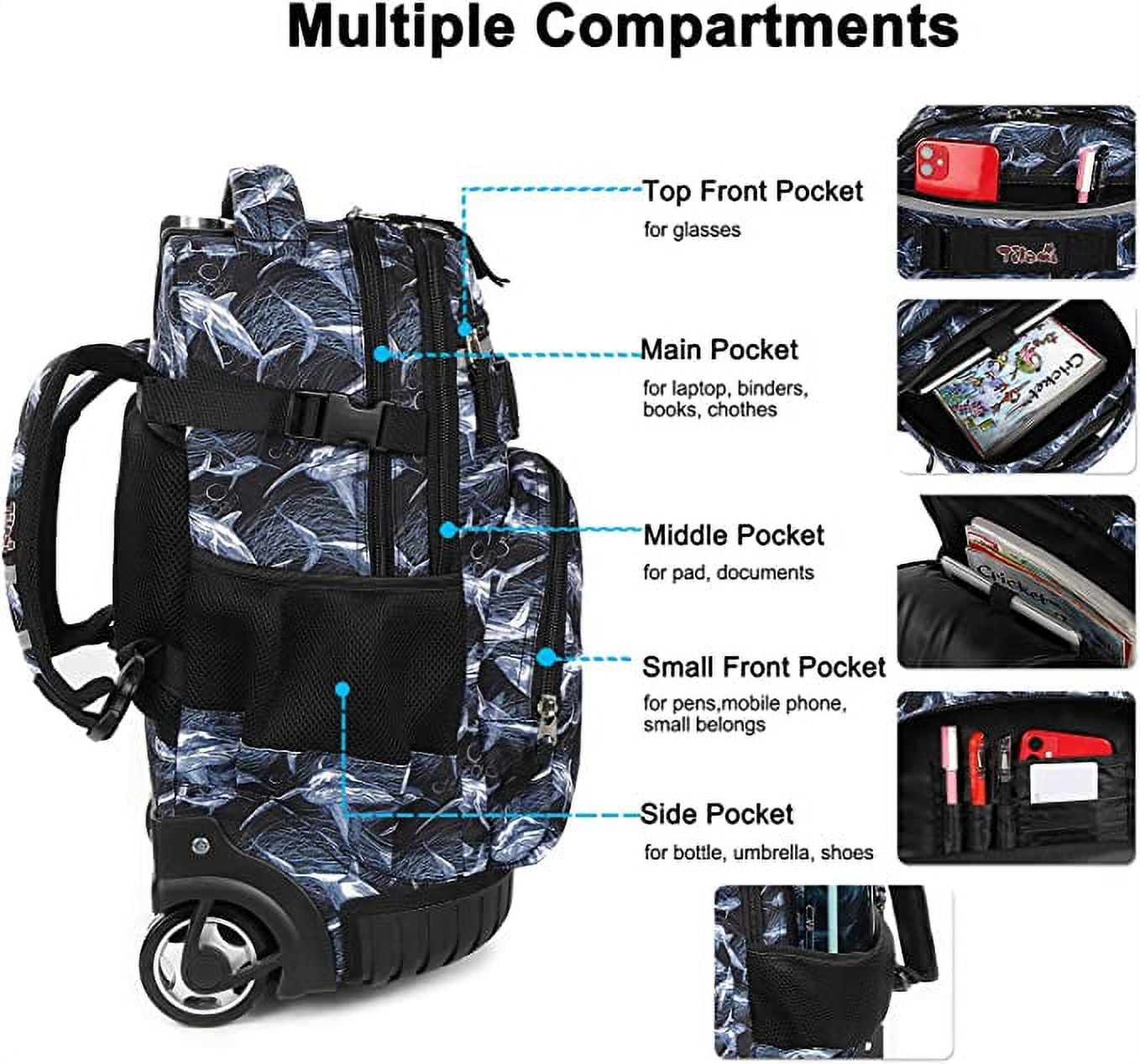Tilami Rolling Backpack 19 inch with Lunch Bag Wheeled Laptop Backpack