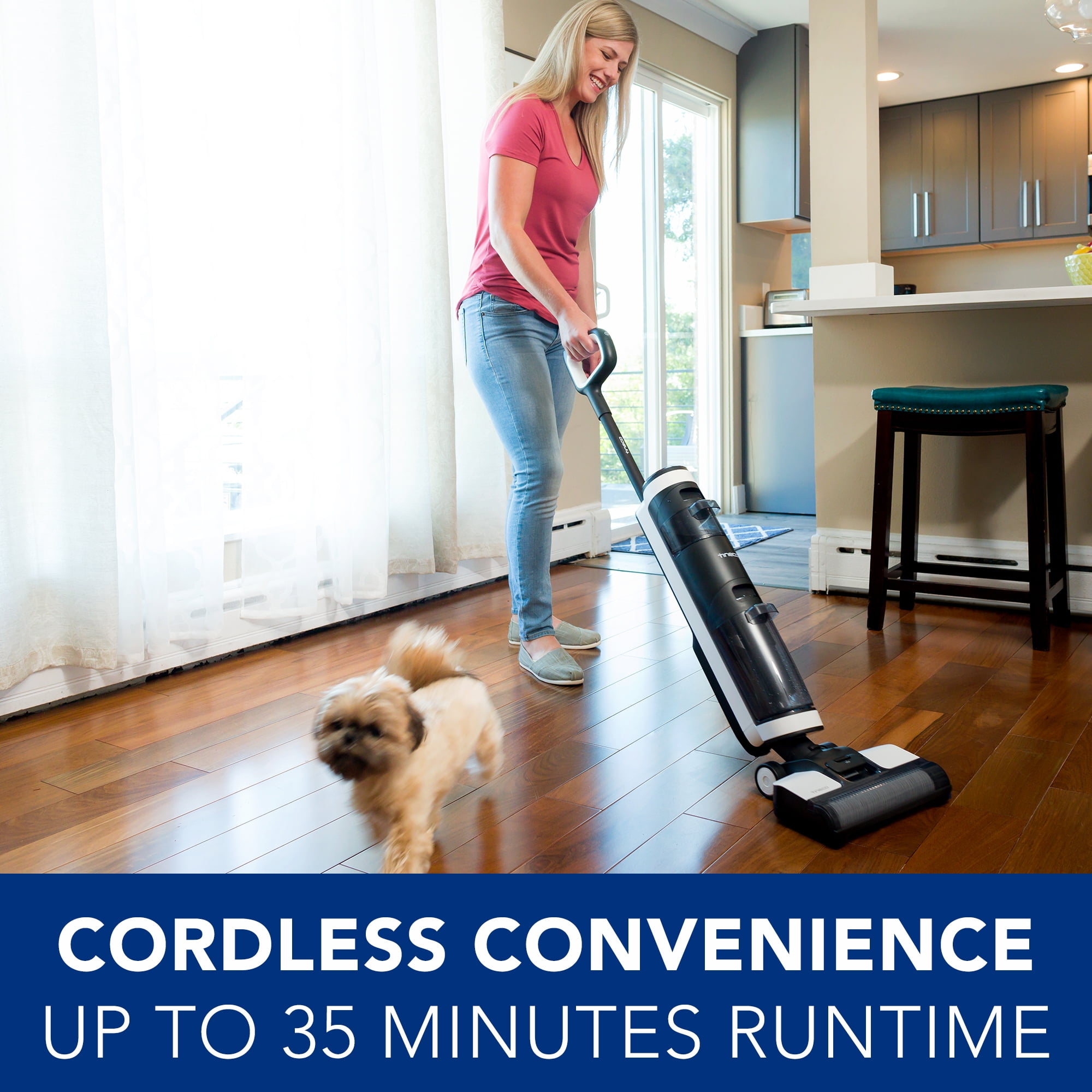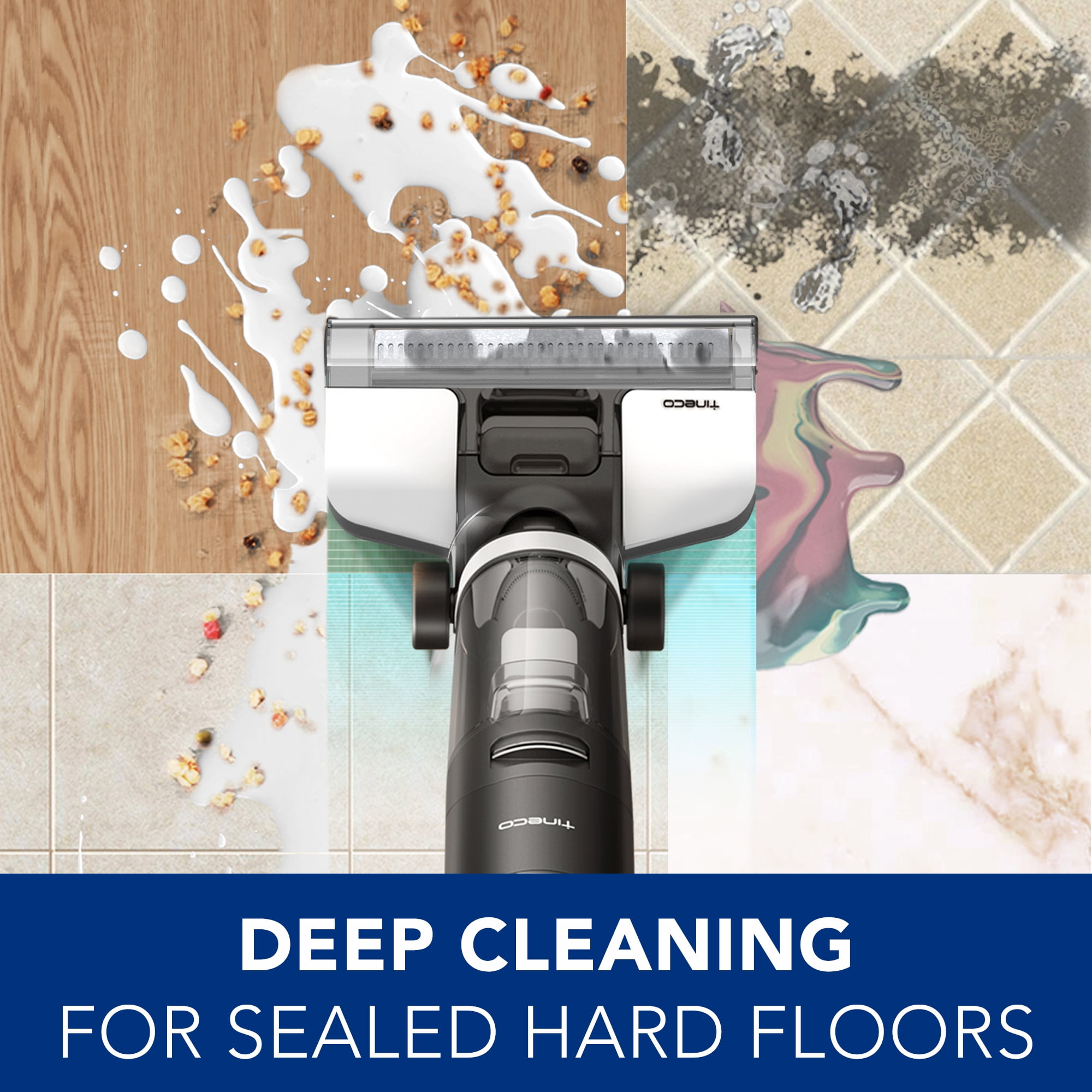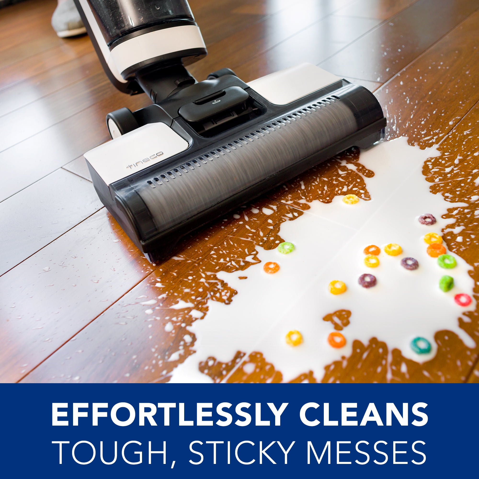 Wash and vacuum floors in one step Cordless iLoop™ Smart Sensor Technology Automatic water flow and suction power adjustment For use on sealed hard floors 2.5 times more powerful suction than iFloor Up to 35 minutes of uninterrupted cleaning Self-propelled Hands-free self-cleaning cycle Spot mode for stuck-on dirt and grime Ultra-quiet Full color LED display App integration Voice Assistant Dual tank technology 4000 mAh battery 0.6L clean water tank capacity 0.5L dirty water tank capacity HEPA filtration FLOOR ONE S3 includes: main body, Tineco Hard Floor Cleaning Solution, HEPA filter, charging base, 3-in-1 cleaning tool Click for Tineco Multi-Surface Cleaning Solution