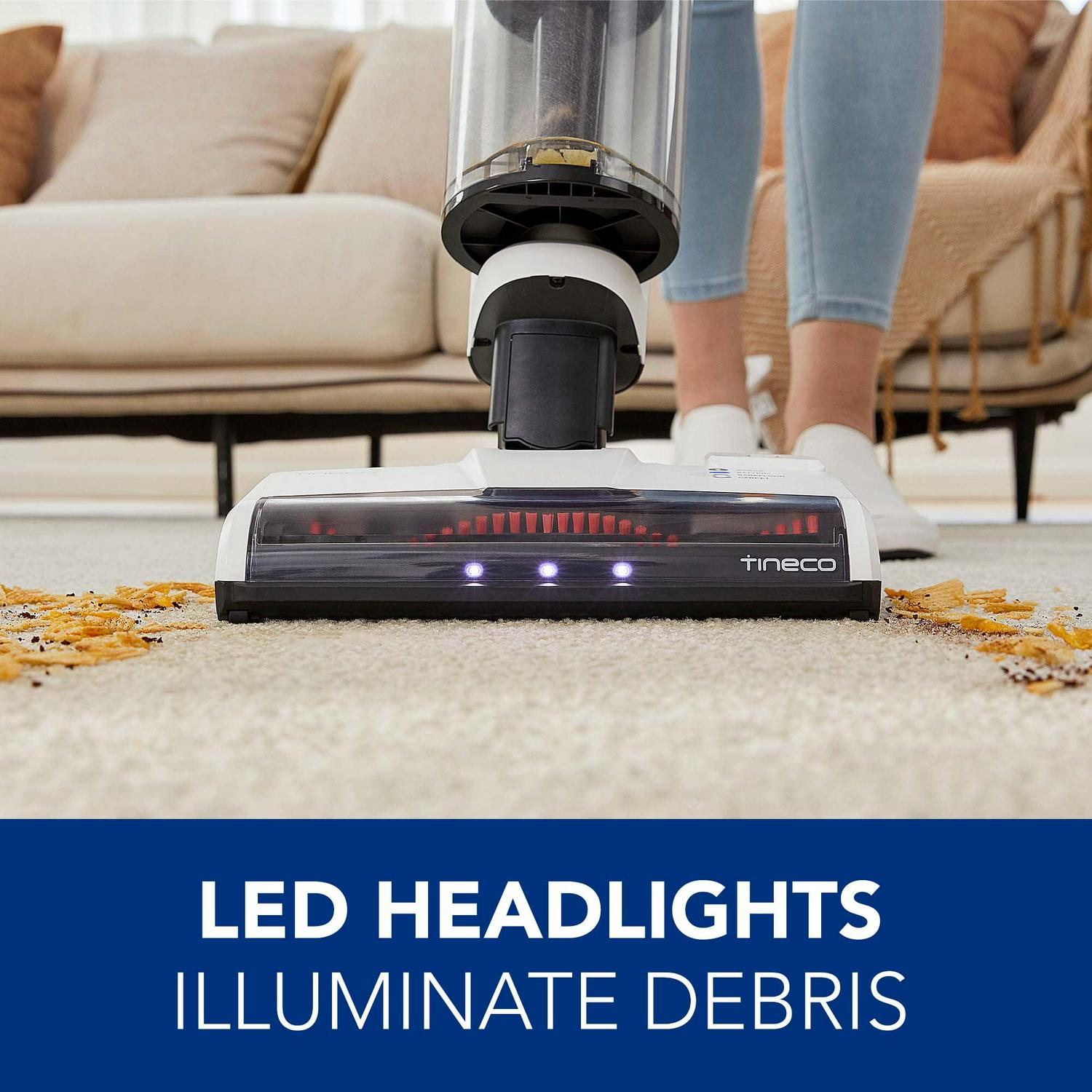 – INNOVATIVE BRUSH NOZZLE: LED Headlights give you a better view to clean under furniture and up in hard-to-reach nooks. This multi-surface vacuum picks up all kinds of debris like dog food or cat litter with total ease thanks to a sawtooth & gapped brush nozzle.