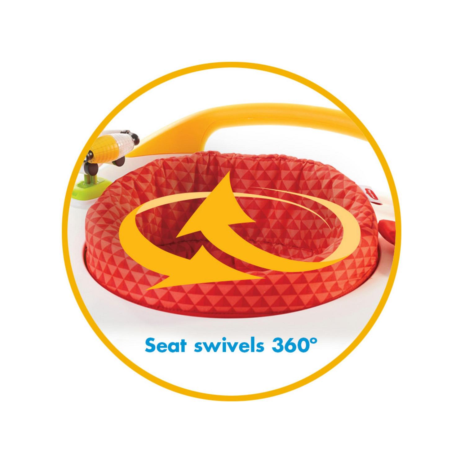 A 360 degree rotating seat allows baby to fully explore their surroundings and be part of the action. Plus, baby will always be entertained with 5 developmental toys and more than 27 activities.