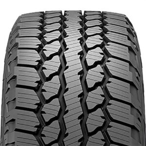The tread pattern has the optimal void ratio and angled tread elements to maintain traction in a wide range of different terrain conditions. The tire provides high performance in loose, uneven, and soft off-road terrains as well. This model is going to maintain forward motion even in challenging off-road conditions without side-slipping. The shoulder blocks are extended to the side as well, ensuring a firm grip while cornering with the vehicle. The tire even comes with a self-cleaning ability that ensures traction by eliminating obstructing objects like rocks, mud, or snow from the footprint.