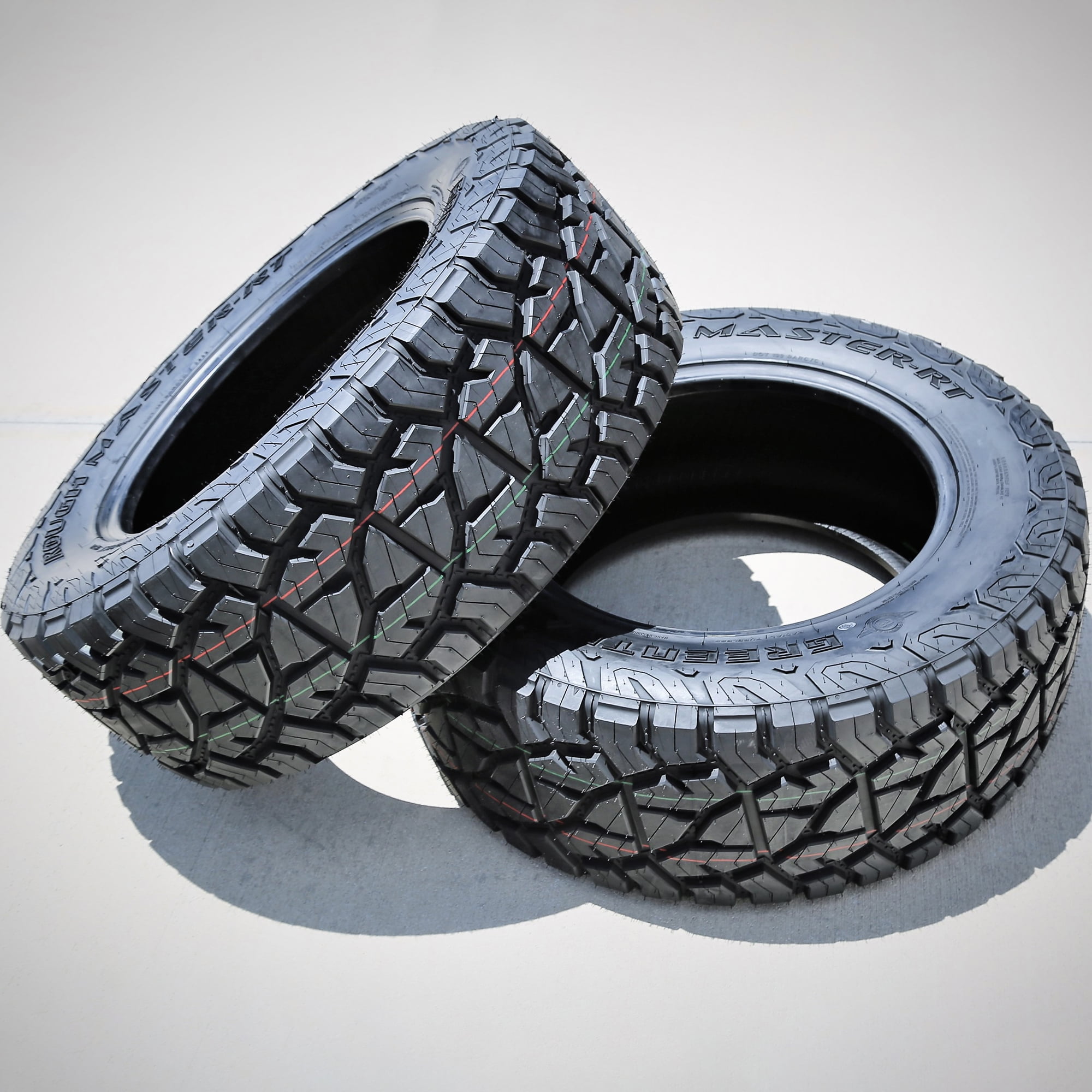 Greentrac Rough Master-RT OVERVIEW The Greentrac Rough Master-RT is a rugged terrain, all weather tire manufactured for SUVs and light trucks. The tire offers exceptional rugged terrain traction. The staggered block placement, with its sipe placement, and the zigzag groove pattern upgrade the tire’s soft, loose, and uneven terrain grip. These elements provide great grip on the road surface with extra biting edges, guaranteeing the tire’s consistent performance. They guarantee the tire’s consistent forward motion, enabling deep mud and loose dirt terrain grip. The self-cleaning tread design eliminates mud, snow, and rocks stuck between the tread elements. This further improves the tire’s on- and off-road driving safety levels. The tread pattern’s consistent surface contact enhances its controllability. In this manner, the tire greatly upgrades the tire’s steering responsiveness and driving stability. Faster and more precise steering response is promoted, while the structure is secured against driving pressure. The reinforced internal structure enables the tire to enhance its load durability. They do not allow the tire to deform under pressure, further ensuring the tire’s off-road driving safety levels. The all season compound and detailed tread design enable the tire to guarantee year-round traction. They enable the tire to greatly improve its dry, wet, and winter weather performance. The tread elements firmly grip the road and terrain surface with the use of extra biting edges. Stronger compound elements maintain rubber flexibility, optimizing its summer and winter traction. During the on-road performance, the grooves disperse water and slush and prevent hydroplaning in the process. The Rough Master-RT guarantees a quiet drive. The ideal tread design’s pitch variation generates a special sound-canceling frequency, which negates sound waves before they can reach the vehicle’s cabin. This pattern does not allow sound waves to reach the passengers, offering a quiet driving experience during the tire’s on-road performance. All weather tires receive the three mountain peak and snowflake (3PMS) symbol for their exceptional winter weather performance. They are all season tires with extra winter weather grip, in order to guarantee safer year-round durability. This ensures their true and secure driving ability throughout the year. Not all tire sizes are suitable for all vehicle types. Please refer to the item specifications for accurate information about vehicle type fitment for this particular size. Manufacturers recommend changing tires every 10 years. As long as tires are properly stored before they are sold, the year of their manufacture will not shorten their service life.