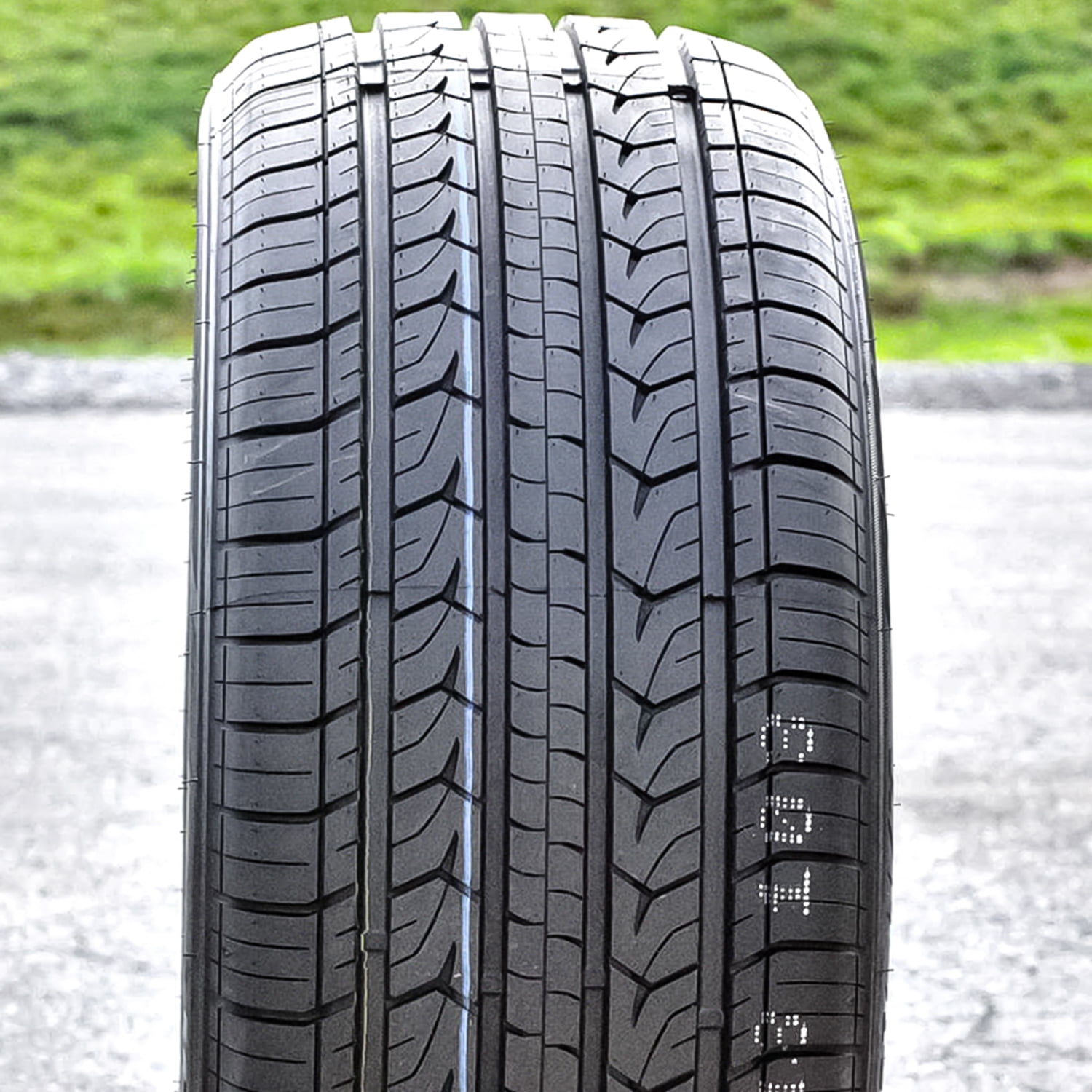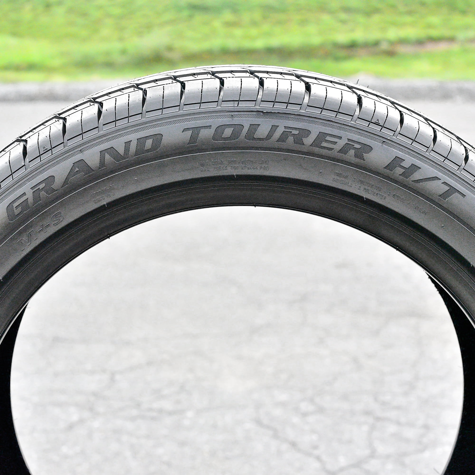Joyroad Grand Tourer H/T OVERVIEW The Joyroad Grand Tourer H/T is a performance and high performance, all season tire manufactured for passenger vehicles and SUVs. This model also has some highway terrain SUV sizes available. The tire promotes excellent all weather traction. The symmetric ribbed tread design and the all season compound increase the dry, wet and winter weather grip on the road surface. This is achieved as the tread design, with the optimal groove and siping placement, increases the grip on the road surface throughout the drive, while the compound keeps the rubber flexibility in various temperatures. The circumferential grooves prevent hydroplaning by dispersing water and slush from below the tire’s footprint. This combination ensures the tire’s safer performing ability throughout the year. The ideal tread design upgrades the controllability, even during the tire’s high speed performance. The ribbed pattern’s center ribs maintain the surface contact throughout the tire’s performance. This enables the tire to improve the steering responsiveness and the driving stability at all times. The steering becomes faster and more precise, while the structure is stabilized against the driving pressure affecting the model. The shoulder block placement heightens the number of biting edges gripping the road surface during the model’s cornering and maneuvering. The tire manages to provide a secure high speed performance. The stronger structure and the heat-resistant performance enable the tire to securely perform at its best high speed capability at all times, offering a secure drive. The Grand Tourer H/T enhances the comfort levels as well. The optimal structure maintains the ideal tire shape under the driving pressure, which ensures the tire’s surface contact throughout the drive. The close road contact allows the tire to absorb the shock of driving while the tires are in motion, minimizing the road vibrations felt in the vehicle’s cabin. This results in a comfortable and enjoyable driving experience. Manufacturers recommend changing tires every 10 years. As long as tires are properly stored before they are sold, the year of their manufacture will not shorten their service life.