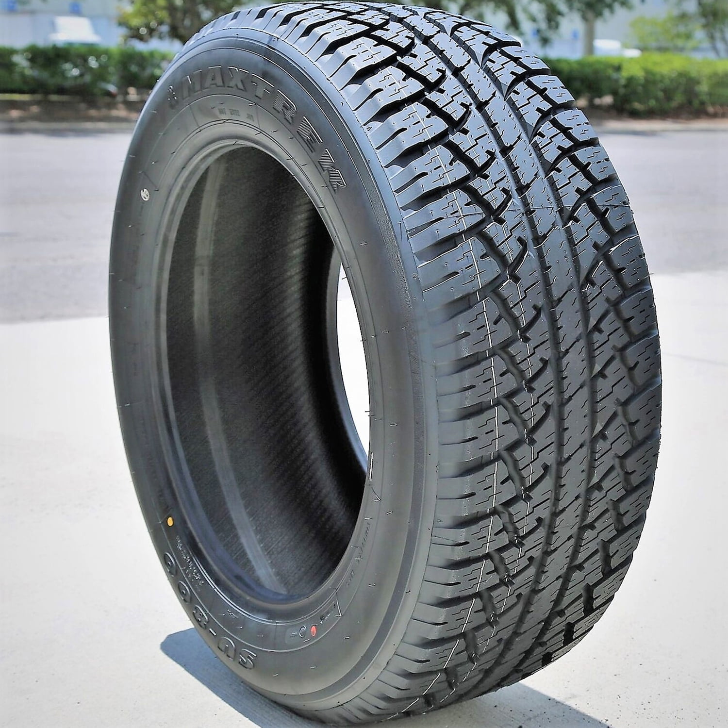 Maxtrek SU-800 A/T OVERVIEW The Maxtrek SU-800 A/T is an all terrain, all season tire manufactured for SUVs, commercial vans, and light trucks. The tread design and all season tire compound enhance the all weather traction. The large tread elements firmly grip the road surface in dry, wet and winter weather conditions and ensure a safer driving experience. The compound does not lose its flexibility in colder temperatures, while the tread elements maintain their road gripping ability. The tread design enhances the hydroplaning resistance by dispersing water and slush from below the tire’s footprint, and they prevent snow from blocking the tire’s contact with the road surface. The constant road contact allows the tire to safely perform to its best ability in all weather. The tread design also ensures excellent all terrain traction. The pattern’s large staggered blocks, wide grooves, and open shoulder design manage to conquer all soft, loose and uneven terrain surfaces and promote a secure drive. The staggered tread blocks find good road grip on all surfaces, and ensure exceptional performance on all terrains with ease. The high void ratio and staggered blocks keep the footprint clean by eliminating mud and ejecting rocks stuck between the tread elements. This maintains the constant road contact and prevents stone retention from damaging the tire’s casing. The SU-800 A/T provides great durability. The model’s internal structure features twin steel belts that prevent the tire from deforming under the driving pressure affecting it. As the tire maintains its optimal shape during the drive, both on and off-road, it is capable of performing to its highest capability. The enhanced structure also avoids damage. It reinforces the tire’s casing against punctures and other off-road damages which can cause harm to it and shorten the tire’s usability. The upgraded driving durability guarantees a safer driving experience. Not all tire sizes are suitable for all vehicle types. Please refer to the item specifications for accurate information about vehicle type fitment for this particular size. Manufacturers recommend changing tires every 10 years. As long as tires are properly stored before they are sold, the year of their manufacture will not shorten their service life.