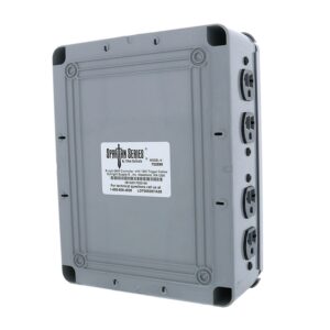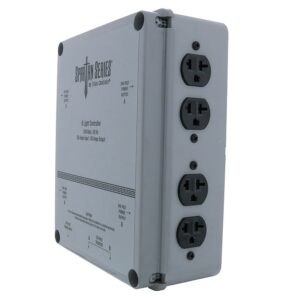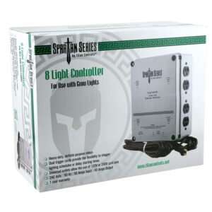 The 8 light controller operates up to 8000 Watts of grow lights in your garden. It features: heavy duty definite purpose contactors, dual trigger cord sets that give you the flexibility to stagger lighting schedules or delay starting times via an external wall timer and universal outlets that allow the use of 120 Volt or 240 Volt cord sets. The controller is housed in a rust, dust and moisture proof enclosure. 50 Amps input power/40 Amps output power/240 Volts/60 Hz./8000 Watts.