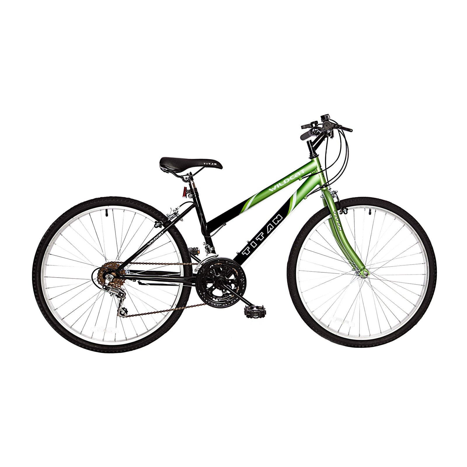 The Titan Wildcat was designed to be a budget-friendly city bike for teens and ladies. This will offer a comfortable and reliable ride. Change gears with the thumb click-shifter levers and enjoy all 18-speeds on the open road. Enjoy a beautiful bike ride in style on a Wildcat. High-quality steel side pulls style for front and rear.
