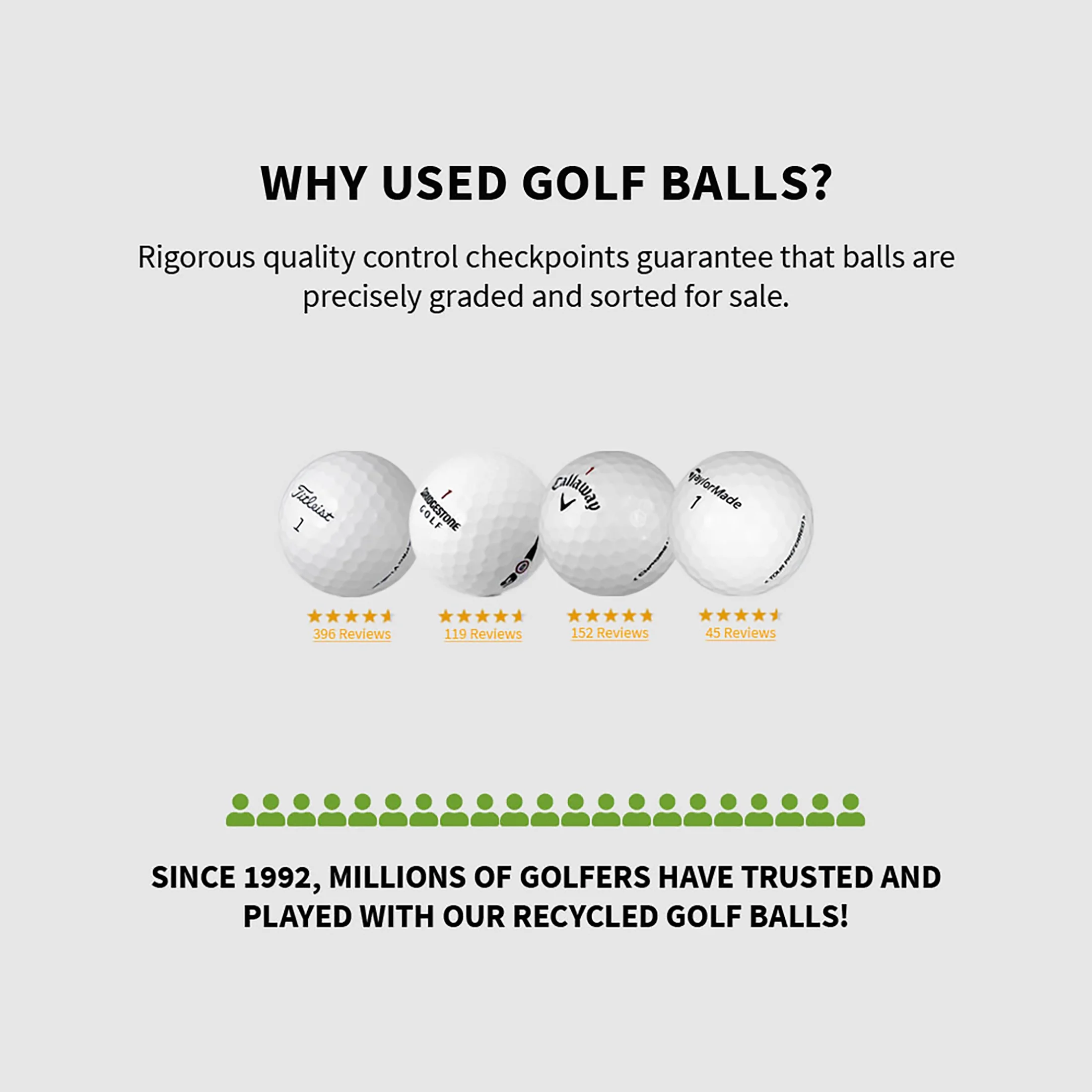 Cost-Effective: Premium recycled & refurbished golf balls from the world’s leading used golf ball company, PG Golf, are more affordable compared to new golf balls. By choosing recycled options, you can save money without compromising performance. Quality Assurance: Premium recycled & refurbished golf balls from PG Golf undergo rigorous inspection and refurbishment processes to ensure their quality. Using the latest machine learning and artificial intelligence technology, PG Golf carefully selects, grades, and refurbish the golf balls to the highest of standards, ensuring they meet specific performance and quality standards. Reduced Fear of Loss: Golfers often worry about losing expensive balls on the course. By using recycled golf balls, you can play with less anxiety, knowing that even if you hit the water or lose a ball in the bush, it won’t be as financially burdensome to replace.So go ahead and buy these golf balls, take a deep breath, and swing away!
