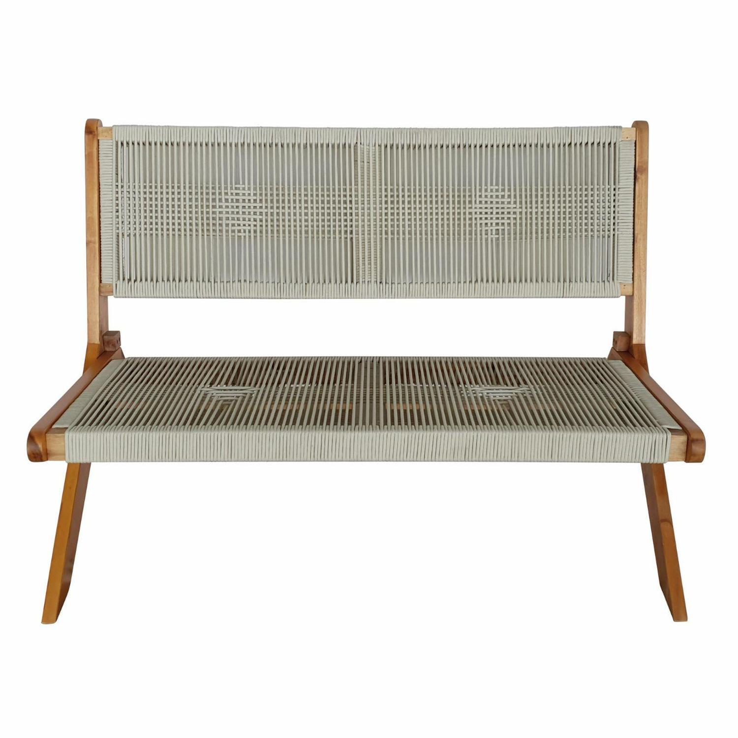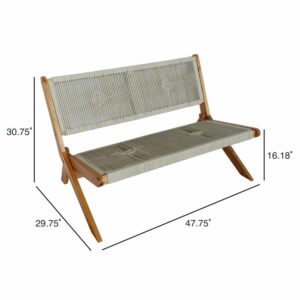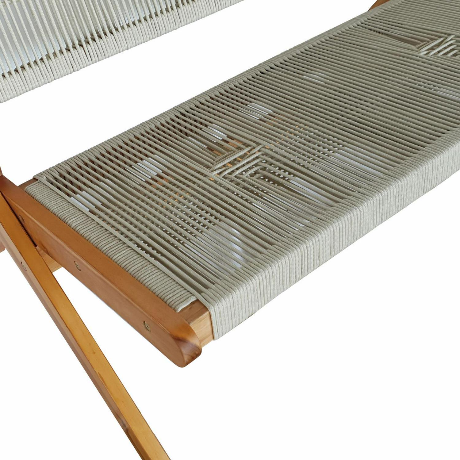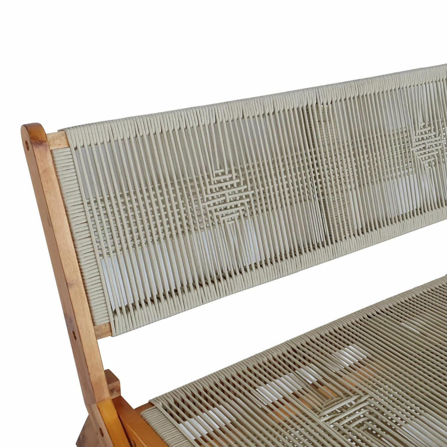 TK Classics Folding Acacia and Taupe Woven Rope Outdoor Bench