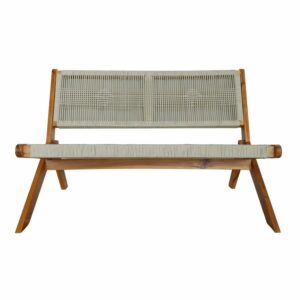 If your small patio or balcony could use a touch of modern style as well as a bit of seating, you ll find the solution you re looking for in this folding acacia loveseat. It s made of acacia wood for its durability and weather-resistant qualities, so it holds up to outdoor conditions. The wood frame is also beautifully complemented by the taupe rope detailing.