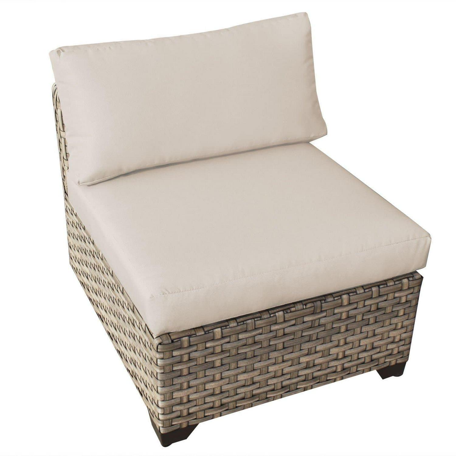 Guaranteed to make an impression, the TK Classics Monterey Outdoor Middle Chair with 2 Sets of Cushion Covers is perfect for any outdoor area. The light, nautical design features custom hand-woven, all-weather resin wicker smoothly wrapped twice to conceal a commercial-grade aluminum frame that will never rust. Construction also sports no sag solid wicker bottoms and height adjustable feet levelers that won t mar your deck or patio. Extra-thick foam seat and back cushions are included as well as beige covers, plus a second set of cushion covers in your choice of available color.