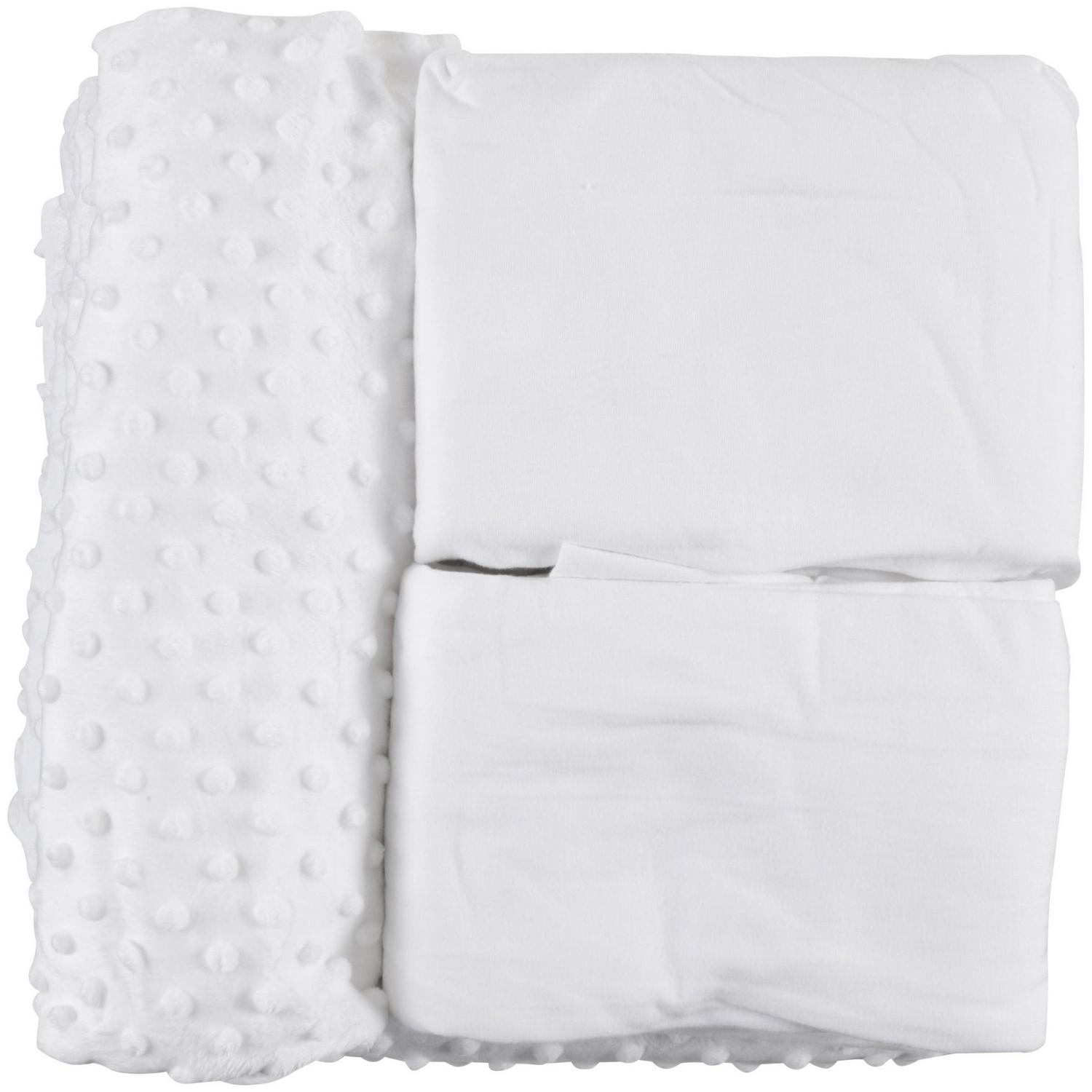 TL Care Minky Dot Chenille 4 Piece Toddler Bed Set, White, for Boys and Girls