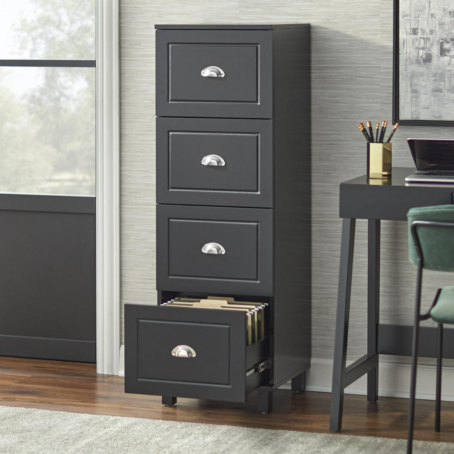 TMS 4 Drawer Vertical Wood Filing Cabinet, Black