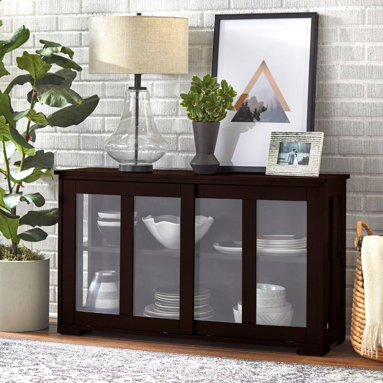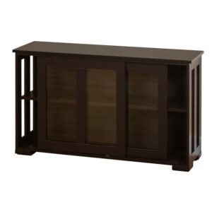 TMS 42a Wide Contemporary Tempered Glass Sliding Door Stackable Dining Room Sideboard, Espresso Brown Finish