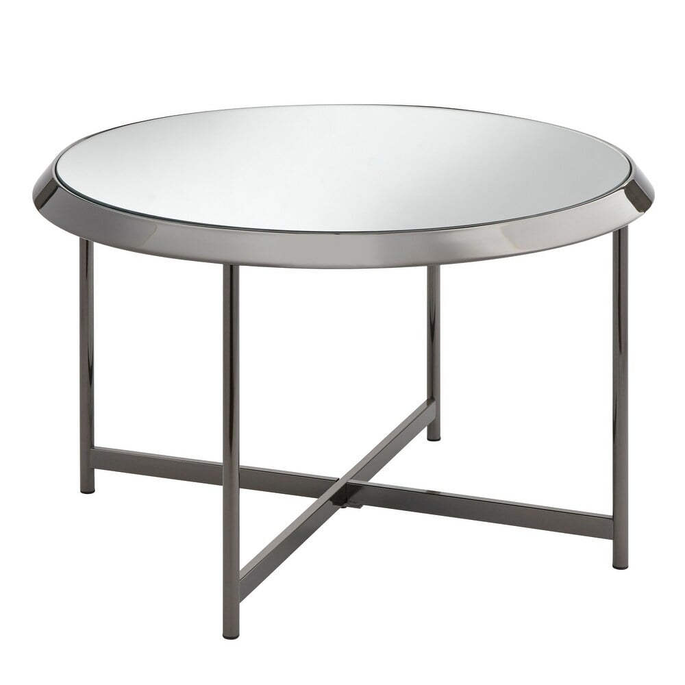 • Includes one (1) coffee table • Round mirrored coffee table • Reflective top makes smaller spaces feel more spacious • Crafted of metal frame with mirror top • Black Nickel finished frame • High gloss finished mirrored tabletop • Ships in one (1) carton • Coffee Table overall dimensions: 18.5 inches high x 29.5 inches wide x 29.5 inches deep