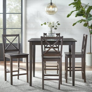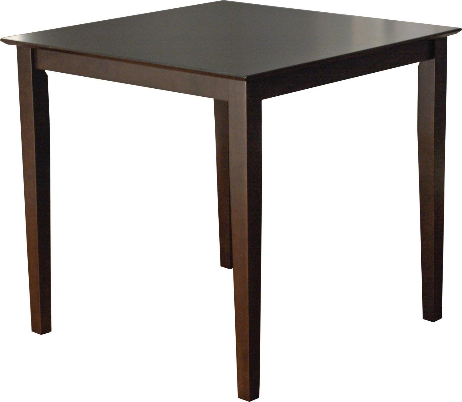 Use the Counter Height Table, Espresso, to upgrade the look of your dining room or kitchen. The sleek design gives the piece a modern look. The table features an attractive espresso finish. Constructed of wood, this contemporary counter height table is durable. It will seat four people comfortably.