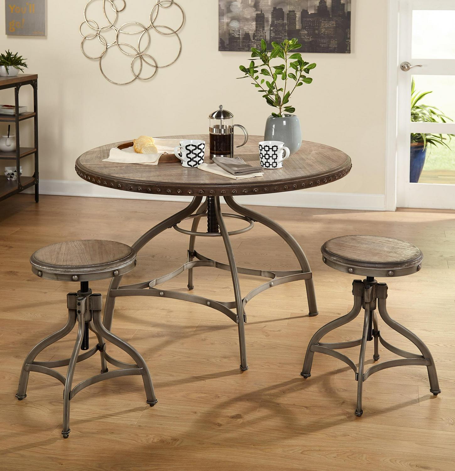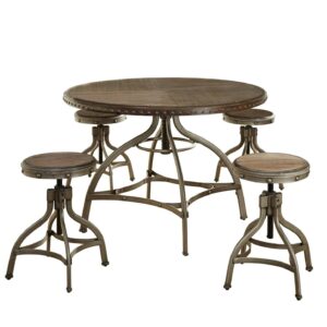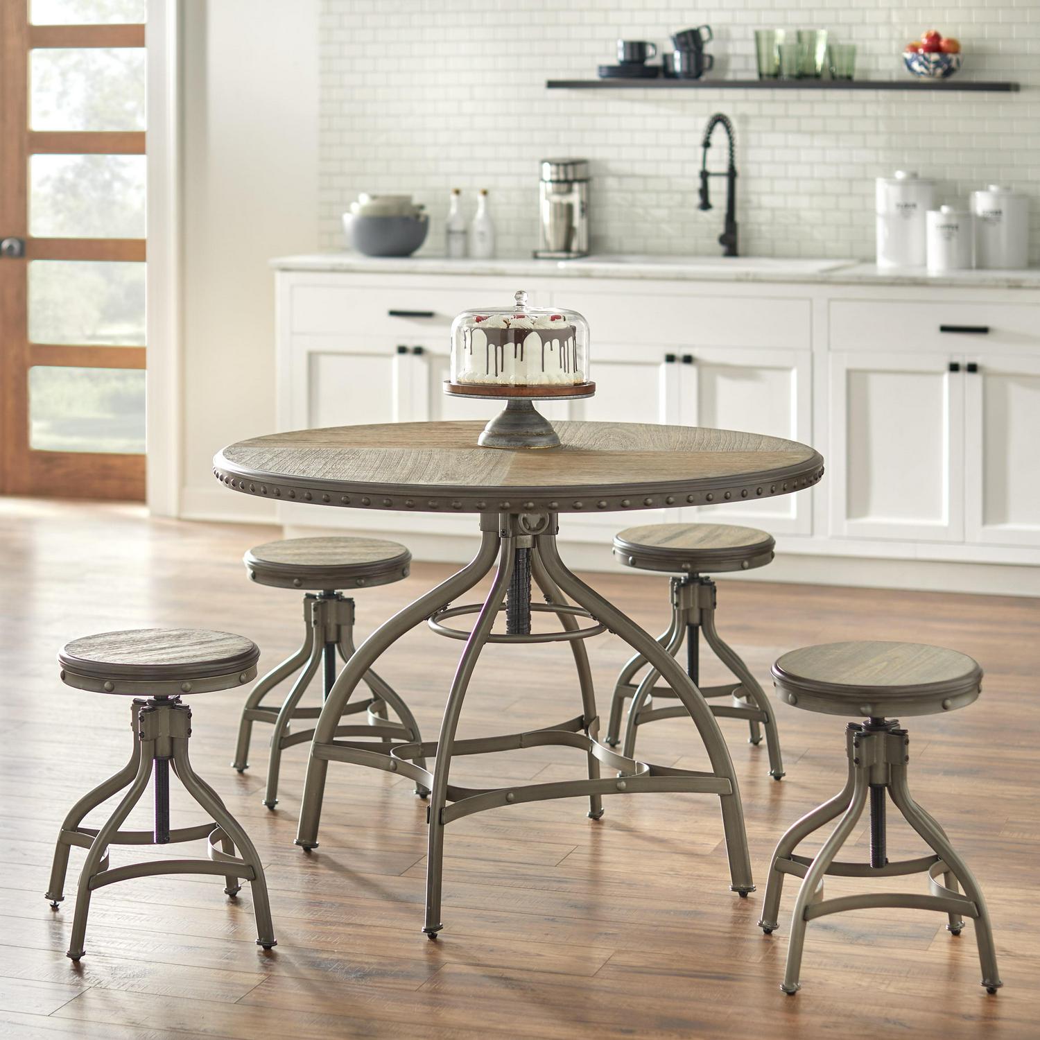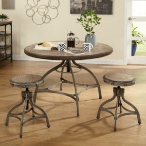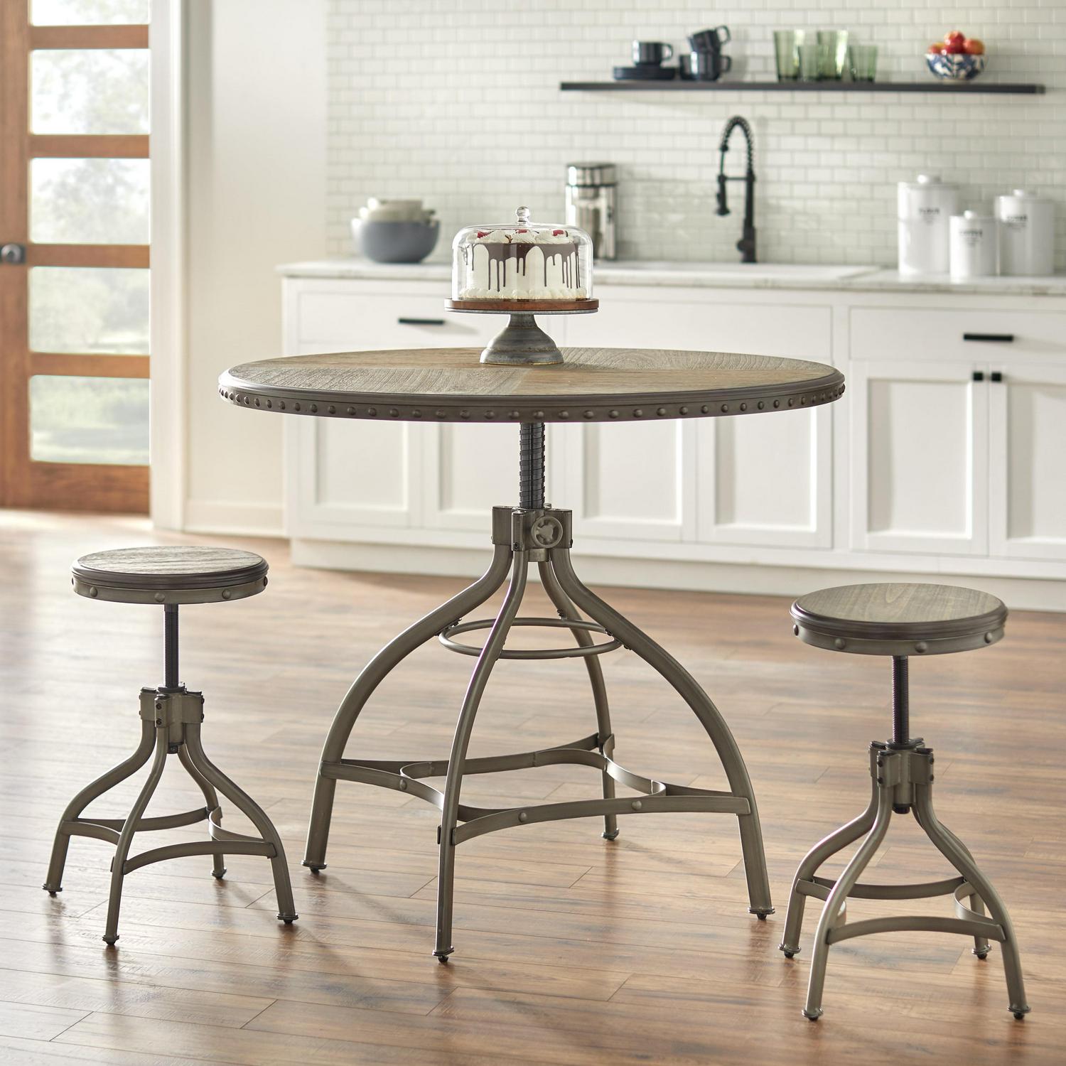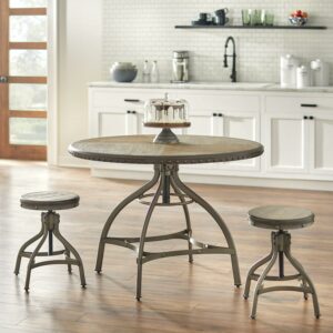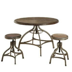 TMS Decker Adjustable Height 45 Round Dining Table with Nail Head Trim, Distressed Finish