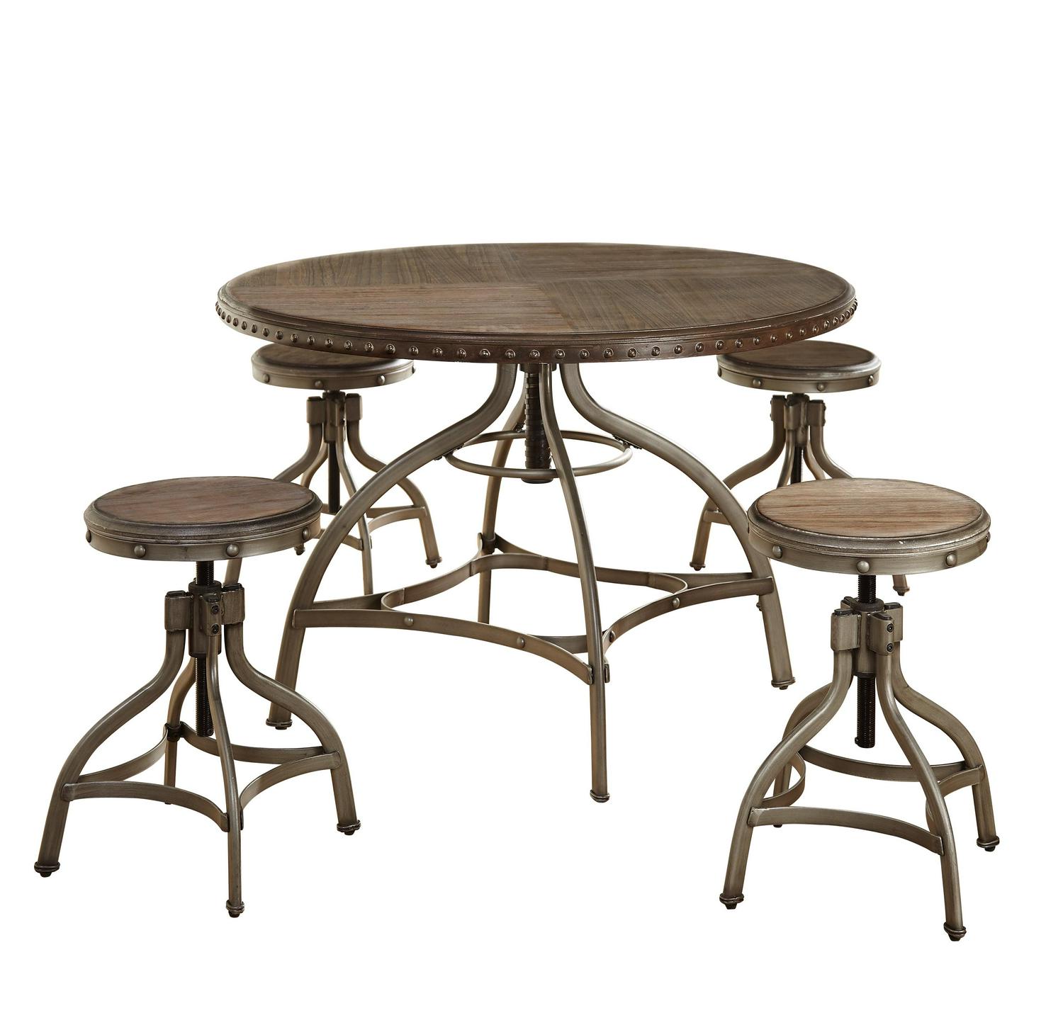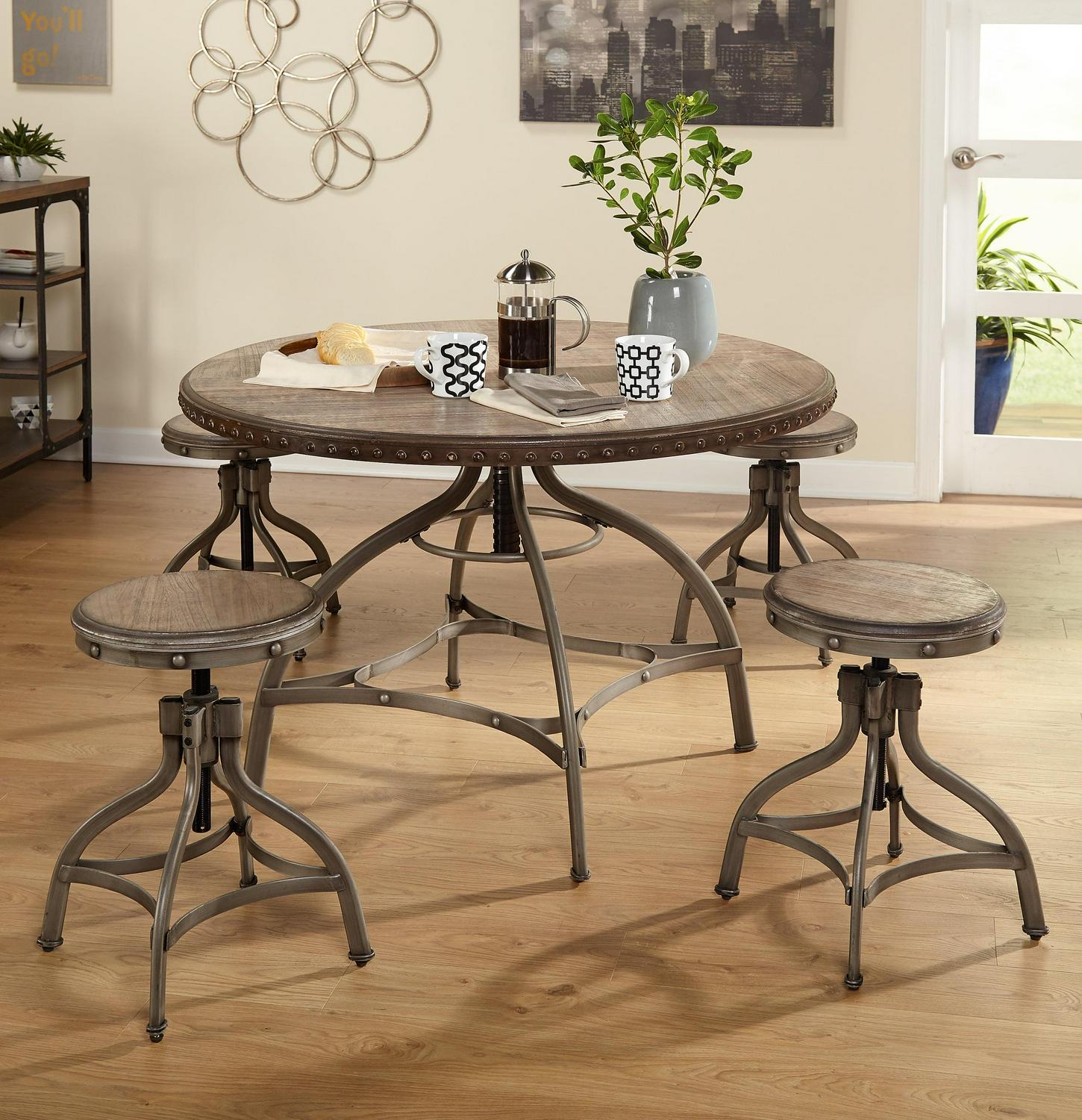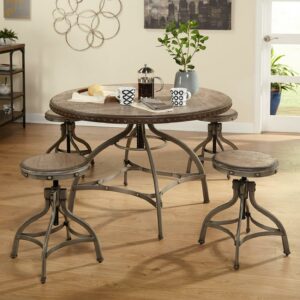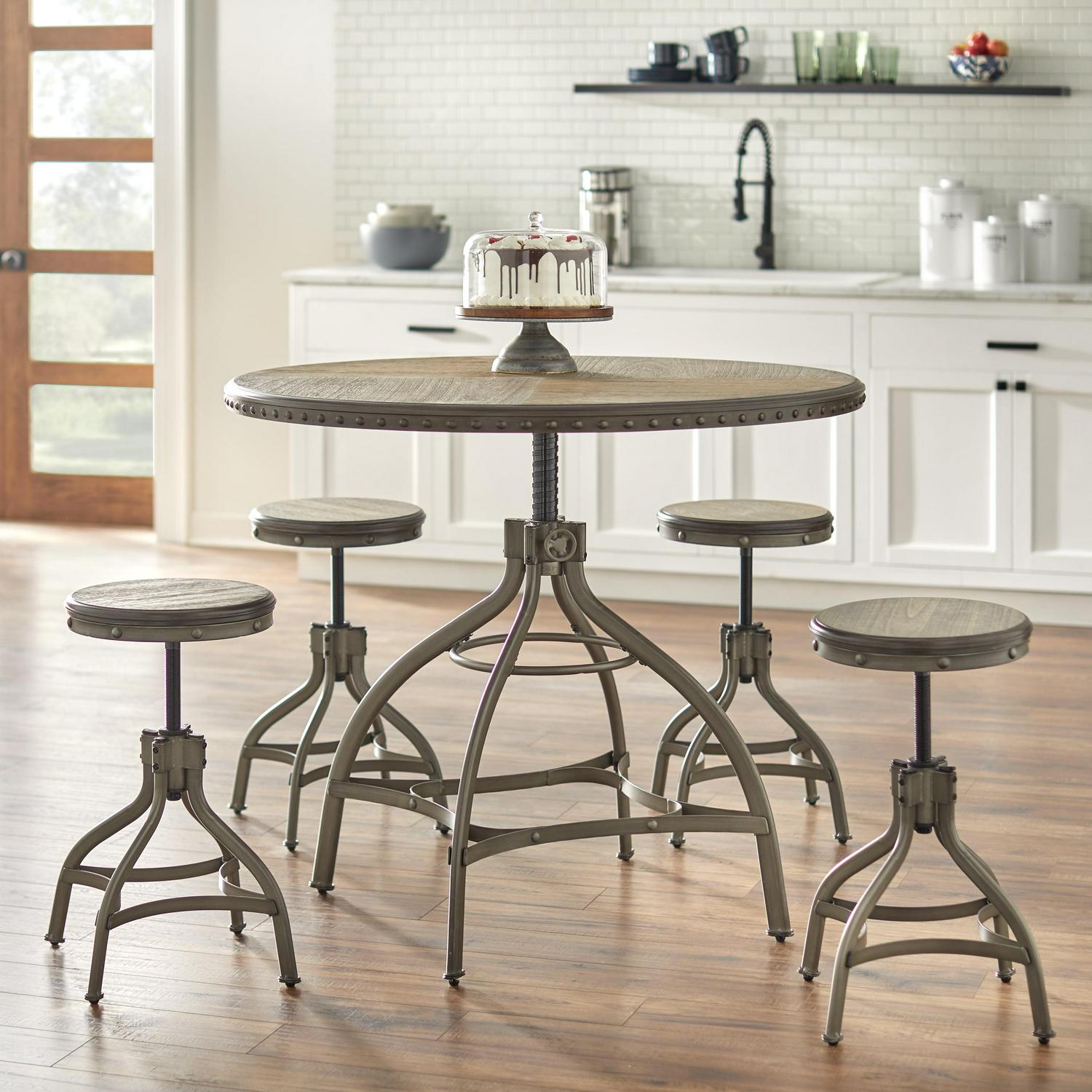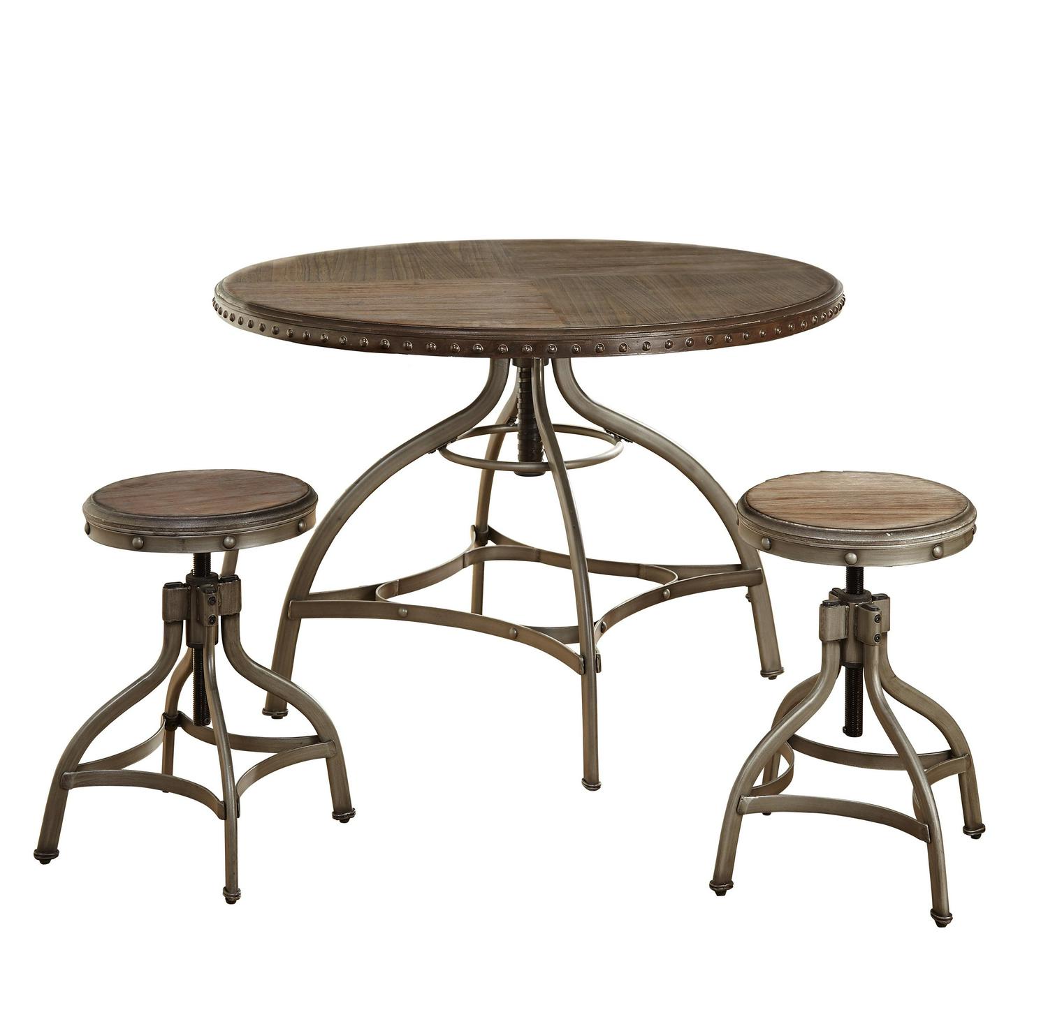 TMS Decker Adjustable Height 45 Round Dining Table with Nail Head Trim, Distressed Finish