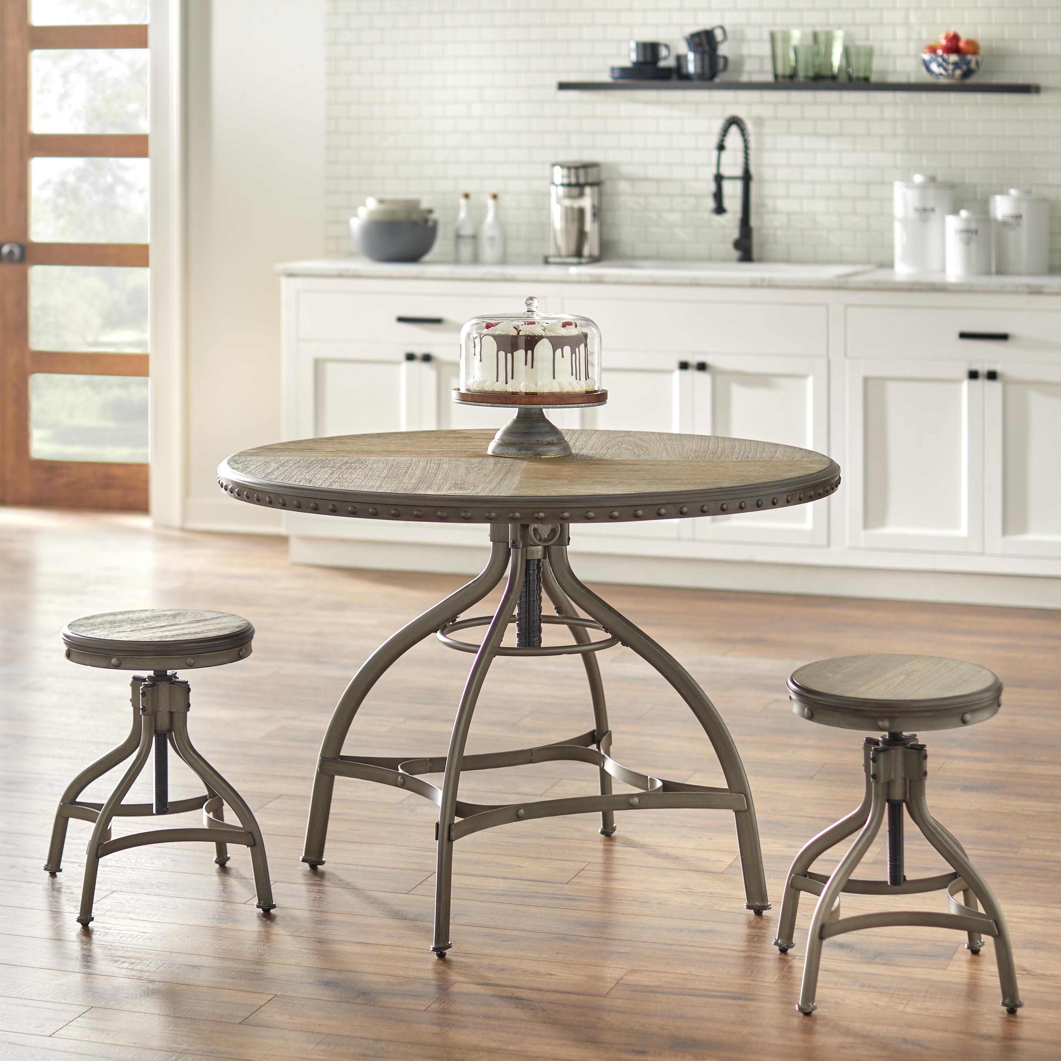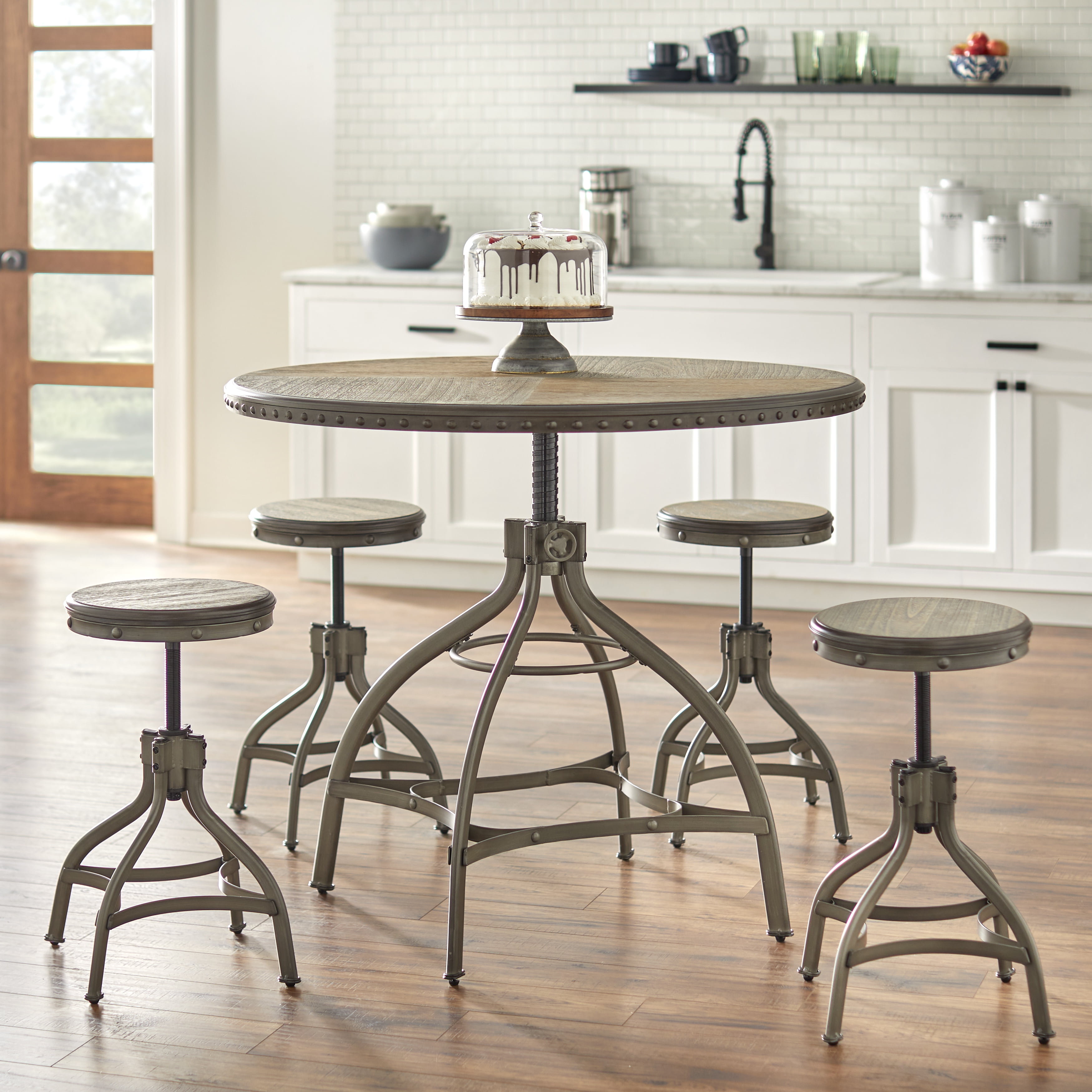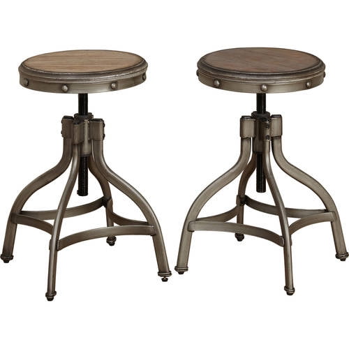 TMS Decker Adjustable Height Indoor Metal Swivel Bar Stool, Set of 2, Distressed Gray