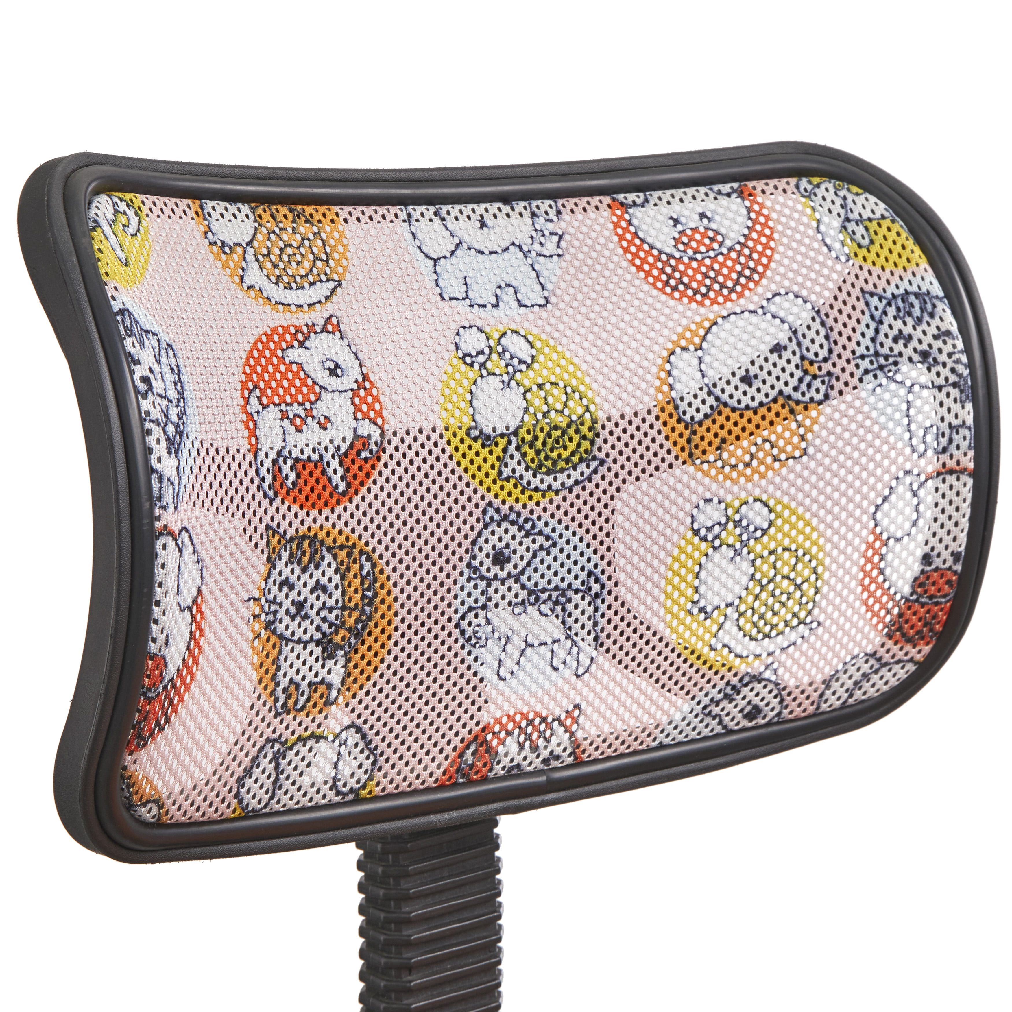 Inspire creativity and learning with the Focus Kids Desk and Chair Set from TMS. The contemporary compact design is the ideal size surface for drawing, doing homework, using a laptop or arts and crafts. Designed with an upper shelf for books, art supplies and more, this desk is constructed with a metal frame to provide stability. The laminated desk top in crisp white is a pleasing contrast to the various metal frame colors. Coordinated with a cool desk chair that features a cushioned upholstered seat and fashioned with a colorful animal print motif. Outfitted with a wheeled base and swivel seat makes this desk chair easy to move around and features an adjustable gas lift for proper positioning. All the bells and whistles create the perfect size child’s desk and chair set, ideal for studying and playtime.
