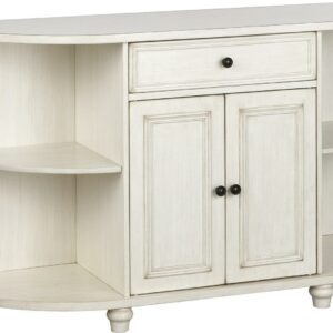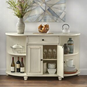 TMS Grace 60a Wide Open Shelf Farmhouse Kitchen/Dining Room Sideboard, Antique White