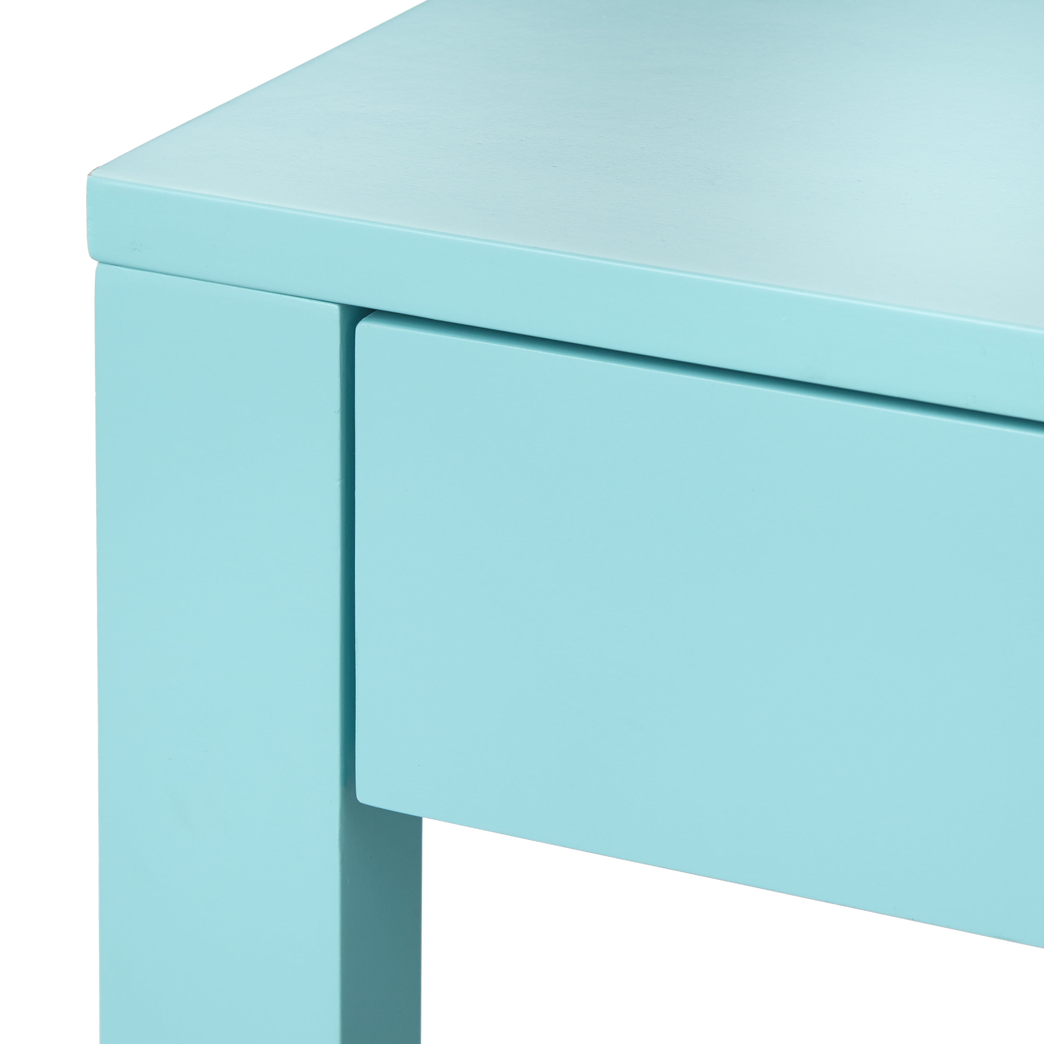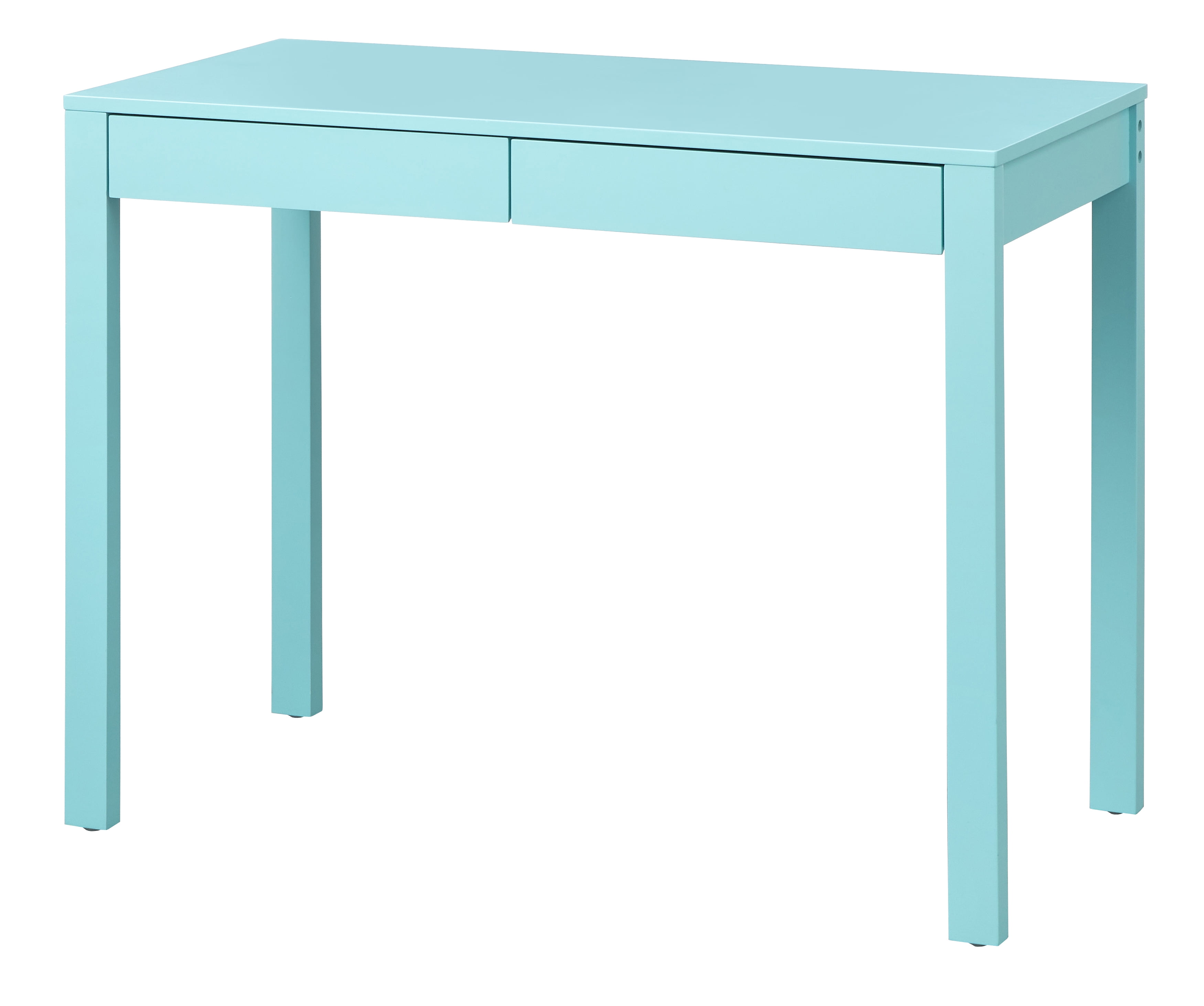 Give your home office or workstation area an easy update with the Grant 2-Drawer Student Writing Desk by TMS. Clean line design makes this desk easy to place anywhere in your home. The comfortable 40” wide size is ideal for paying bills, homework or working on a computer. Two convenient drawers allow ample space for storing pens, paper, device charges and more. Constructed with sturdy MDF and pine wood legs, this desk is finished in an aesthetically pleasing fresh Aqua Blue.